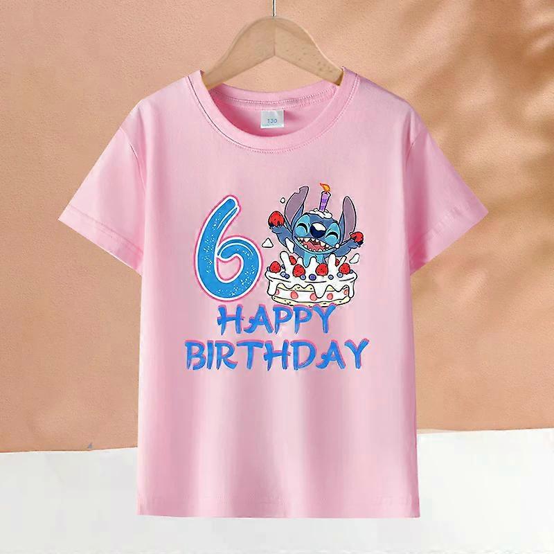 Disney Stitch Child Pink Short Sleeve T-Shirt Cartoon Birthday Number Print Cotton Pullover Girls Kawaii Summer Casual Top Gifts