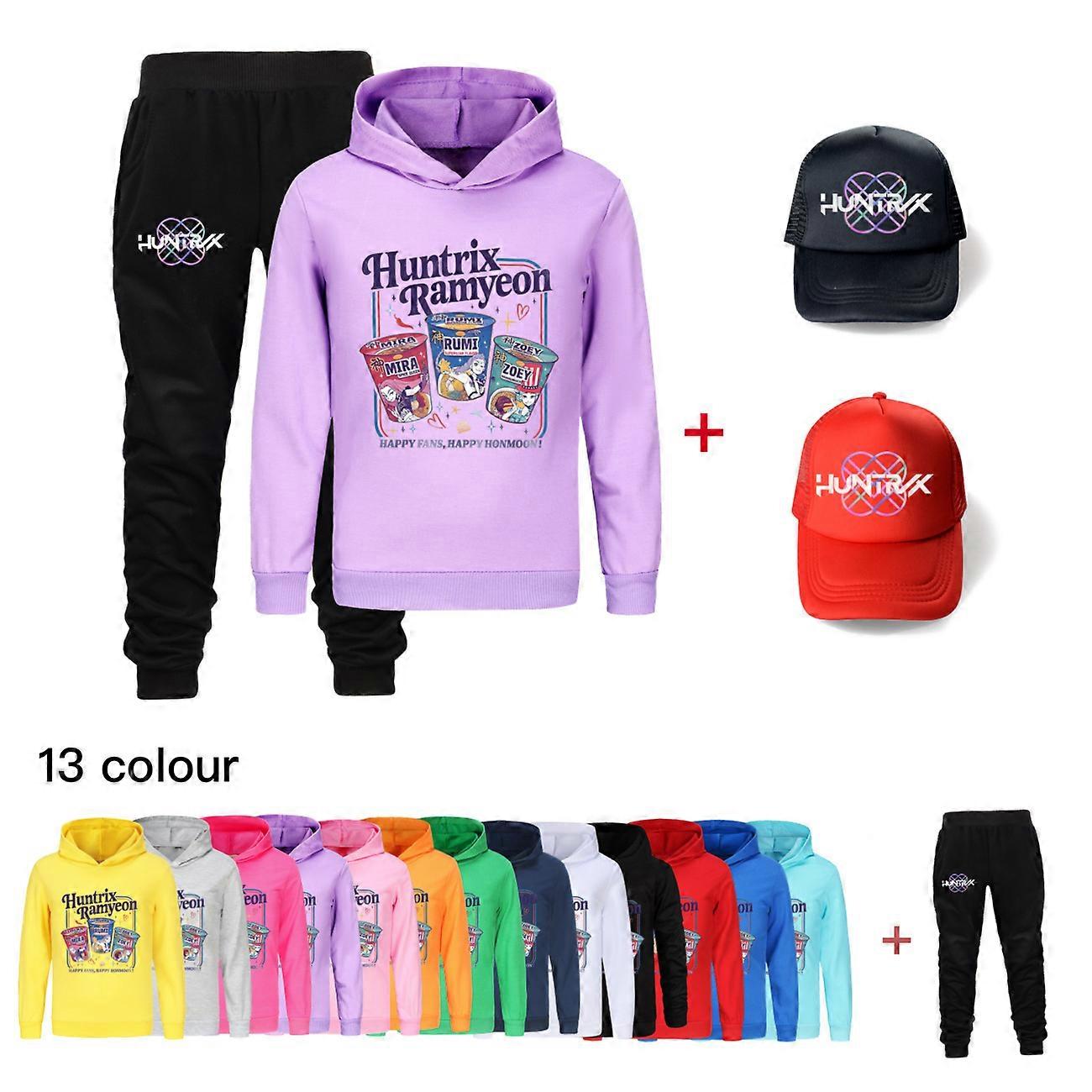 Kids KPop Demon Hunters Huntrix Ramyeon Clothing Set Autumn Boys Girl Hoodie Tracksuit Hooded tops Suit Children Sweatshirt+hat