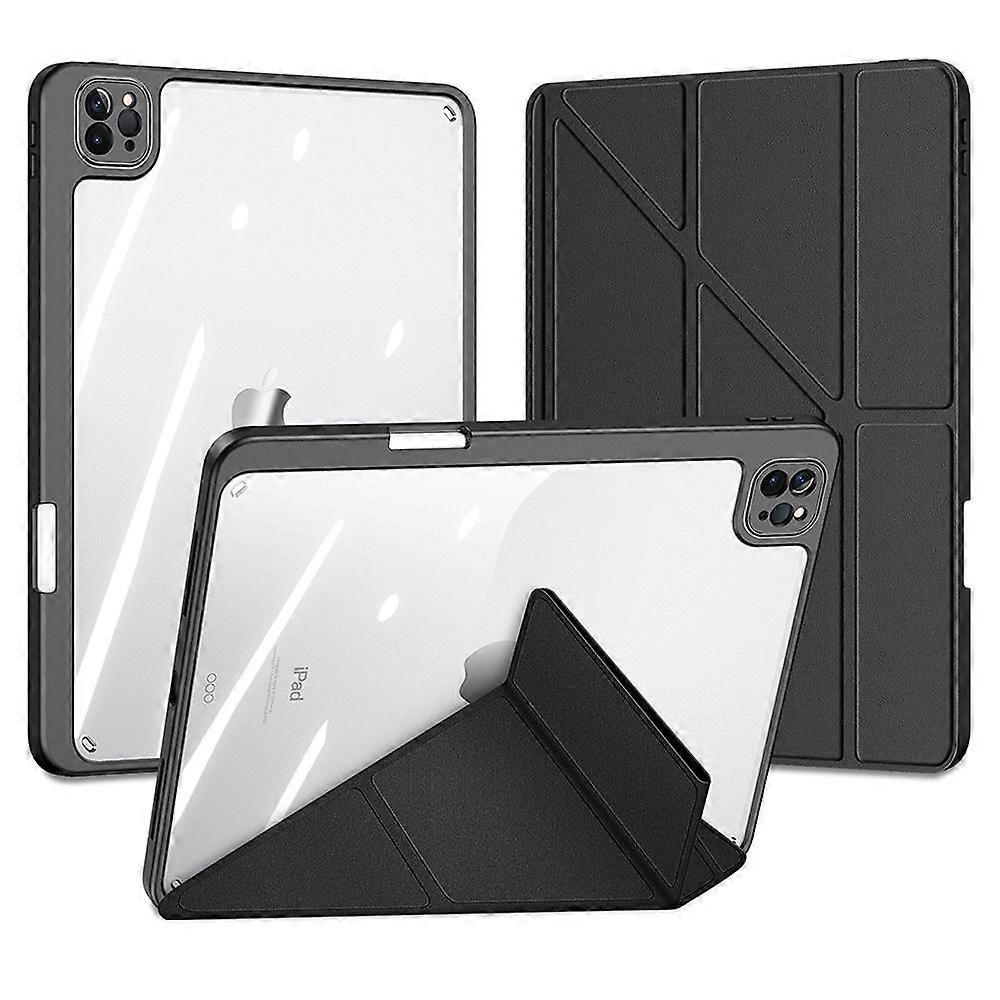 For iPad Pro 11 (2022/2021/2020) Case Detachable Origami Stand Leather + TPU + Acryclic Clear Back Cover