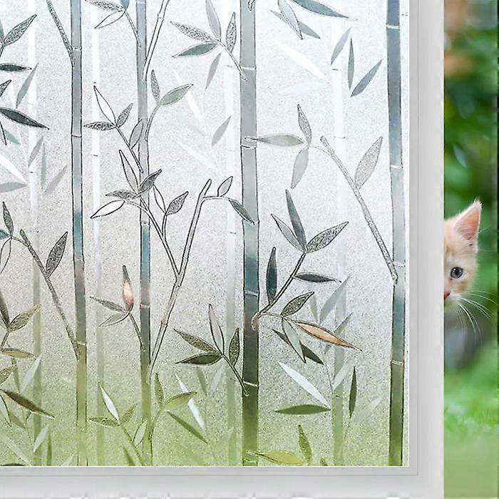Niviy Window Privacy Film Non-Adhesive Bamboo Window Film Glass Window Coverings Bathroom Home Kitchen Office 17.7in by 78.7in