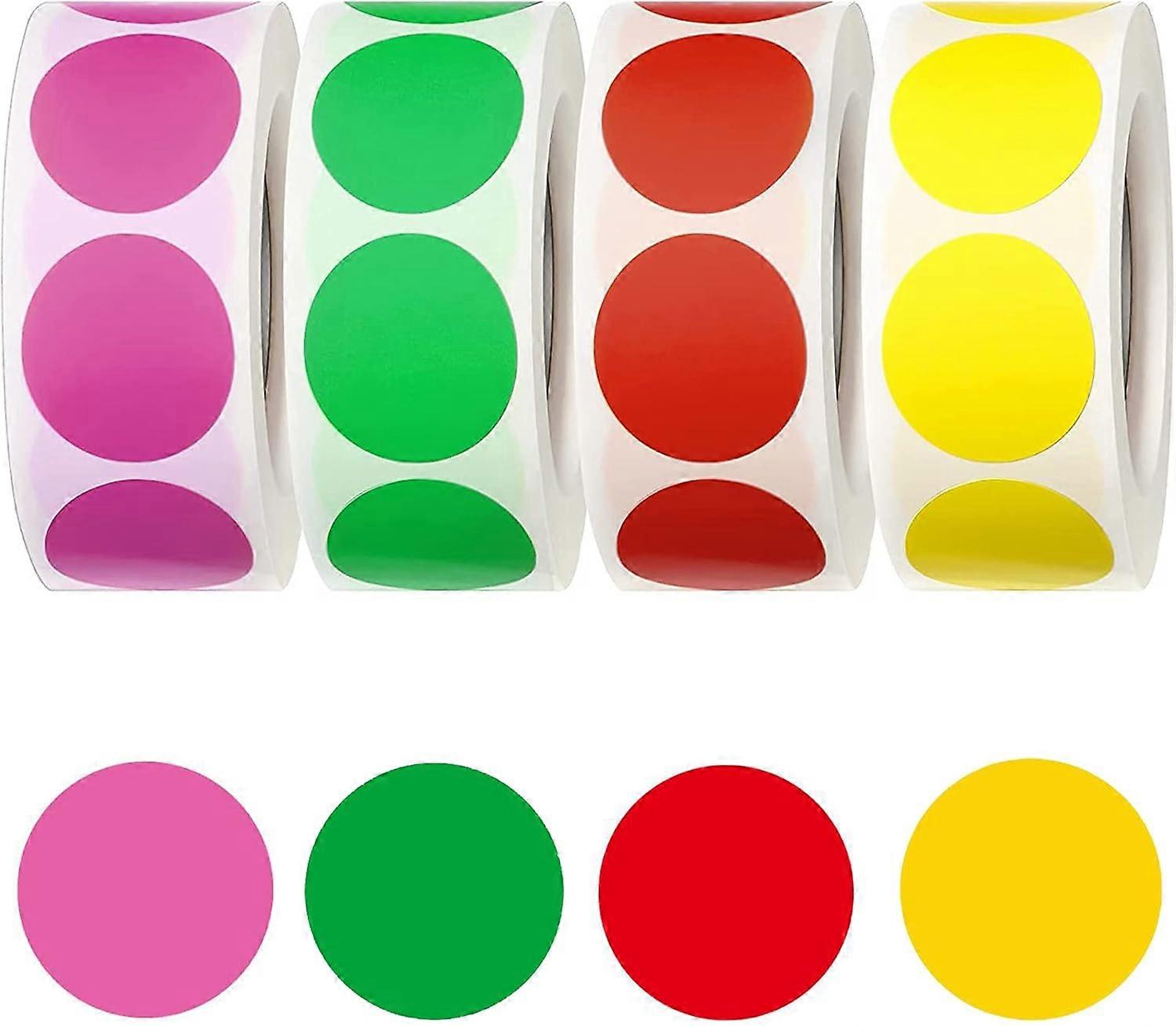 2000 Pieces 1 Inch Dot Stickers Circle Round Removable Dots Label Rolls Label Sticker | Inventory Labeling(Red| Pink| Yellow| Green)