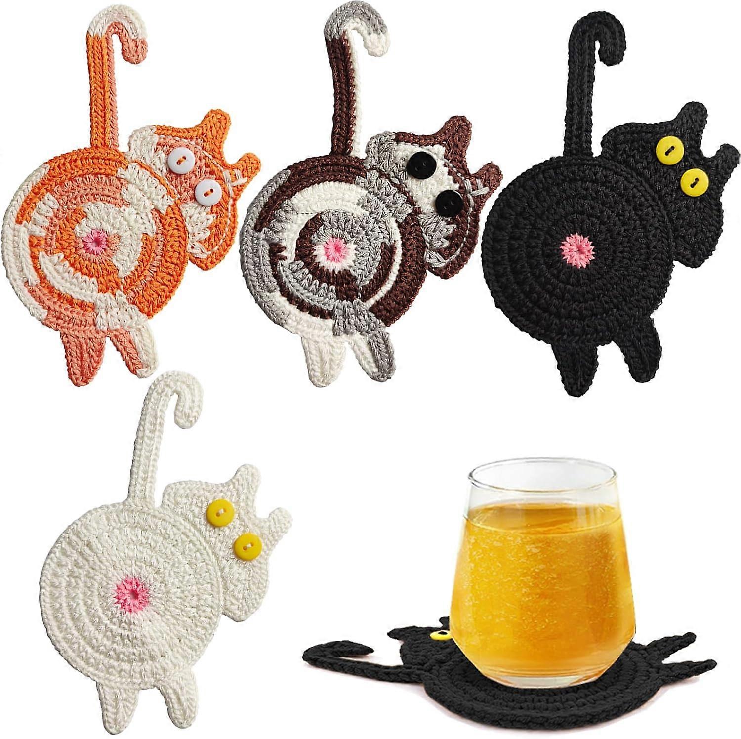 Drink Coaster| Woven Creative Coasters for Cat Lovers| Gag Gifts Cat Coffee Coaster for Desk Accessories Home Decor Tabletop Protection