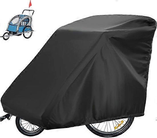 All-round Protection:Bike Trailer cover would fit over the entire bicycle trailer, protects your valuable trailer perfectly from fading due to weather influences, protects your bike well from scratches. Not necessarily for traveling, more so that it stays clean when it is in the shed Universally Compatibl:Suitable for all children's bicycle trailers from Qeridoo, Burley, Thule, Chariot, Croozer, Leggero, Nordic Cab, Yepp, Merida and Blue Bird. Cover Size: 55" L x 39" H x 33" W (please measure your bicycle trailer before ordering), the cover fits universally on any 1 and 2 seater trailer or any dog trailer High Quality Waterproof Fabric:High-quality workmanship and the material is made of 420D black Oxford cloth, PU coating, UV protection, special coating can improve UV stability, design with double taped seams to ensure that no water drops penetrate the cover to the components Windproof:Thanks to the cable pull at the bottom of the cover, the folding garage fits snugly to your children's bicycle trailer, adjustable windproof rope can be tied to the tyre Easy to Wear:After directly covering the whole cart, tighten the contraction rope to prevent it from being blown away by the wind, and come with a storage bag that can be easily folded and placed in a recycled bag when not in use,it can still be used in winter