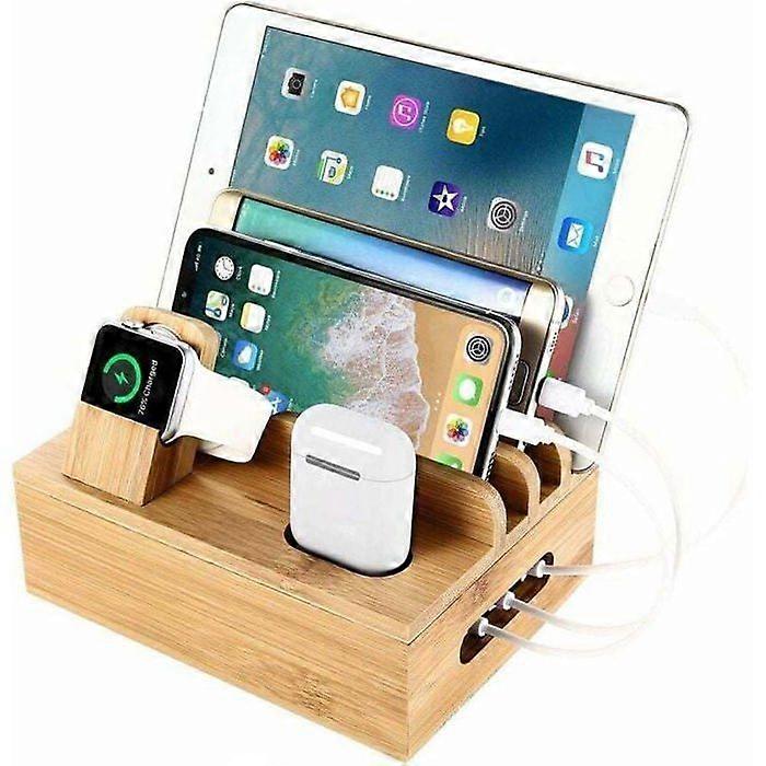Bamboo Wood Desktop Organizer Charging Docking Station Charger Holder Cradle Charge Stand compatible with iPhone 16 15 Pro Max iPad Apple Watch Ulr