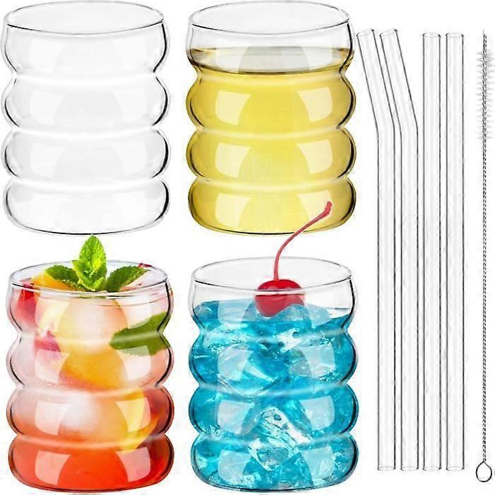 2 Pcs Drinking Glasses with Glass Straw 14oz Glassware Set|Cocktail Glasses|Iced Coffee Glasses|Beer Glasses| Water|Soda|Tea|Gift|with Cleaning Brushe