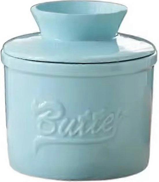 fanquare Porcelain Butter Jar with Lid| French Ceramic Butter Crock with Water Line| Sealed Butter Dish Countertop Fridge| Blue Alphabet