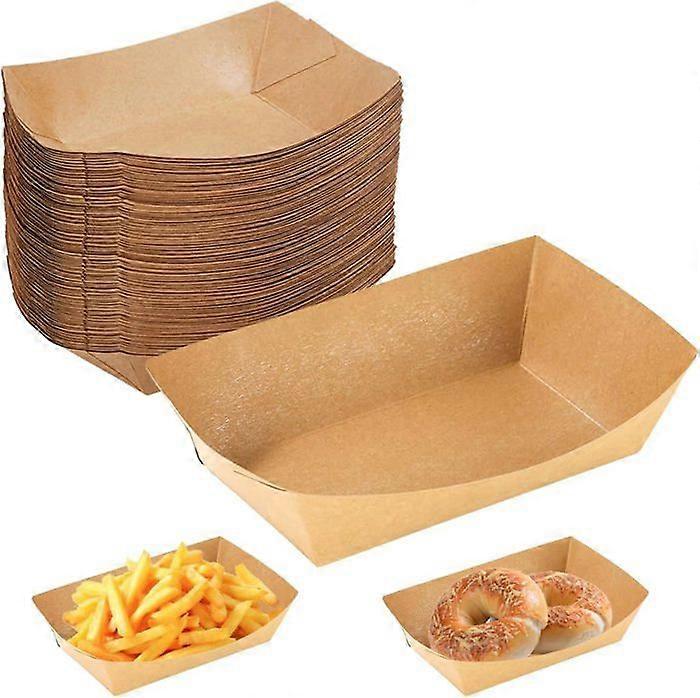Fit Meal Prep [125 Pack 5 lb Paper Food Trays Heavy Duty Disposable Food Boat| Kraft Brown Nacho Tray for Parties Fairs Picnics Carnivals| Holds Ha