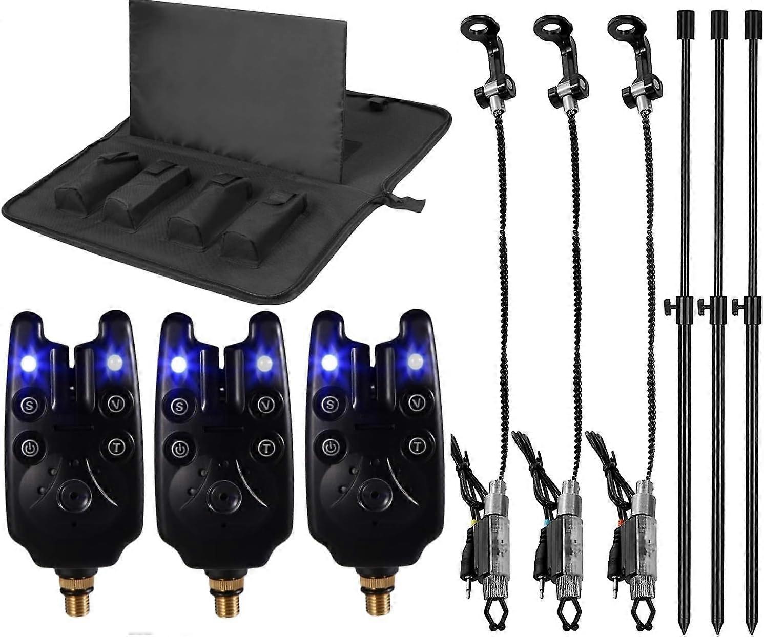 LSOSVSEU's 3 LED Fishing Alarms & Banksticks & Swingers with Tool Bag for Ice & Night Fishing