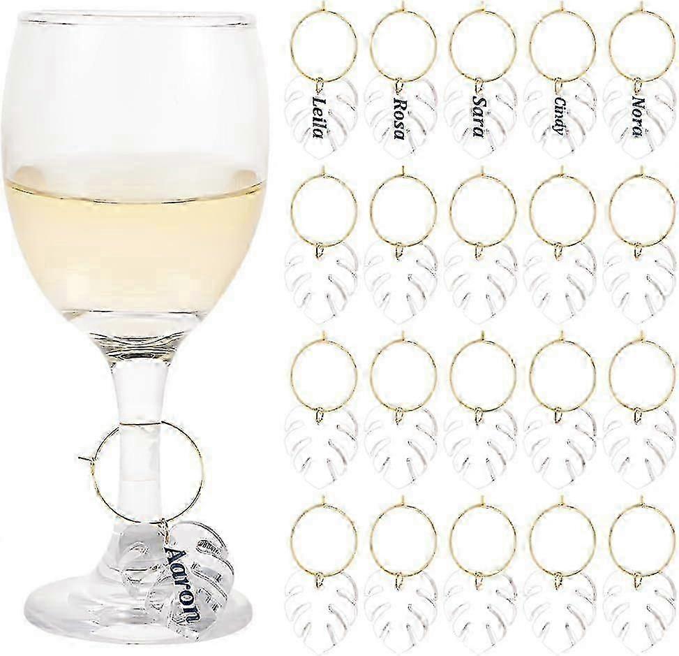24 Pcs Leaf Wine Glass Markers Tags Transparent Acrylic Wine Glass Rings Wine Glass Jewelry for Glasses Tumbler Cup Wine Tasting P szsym02