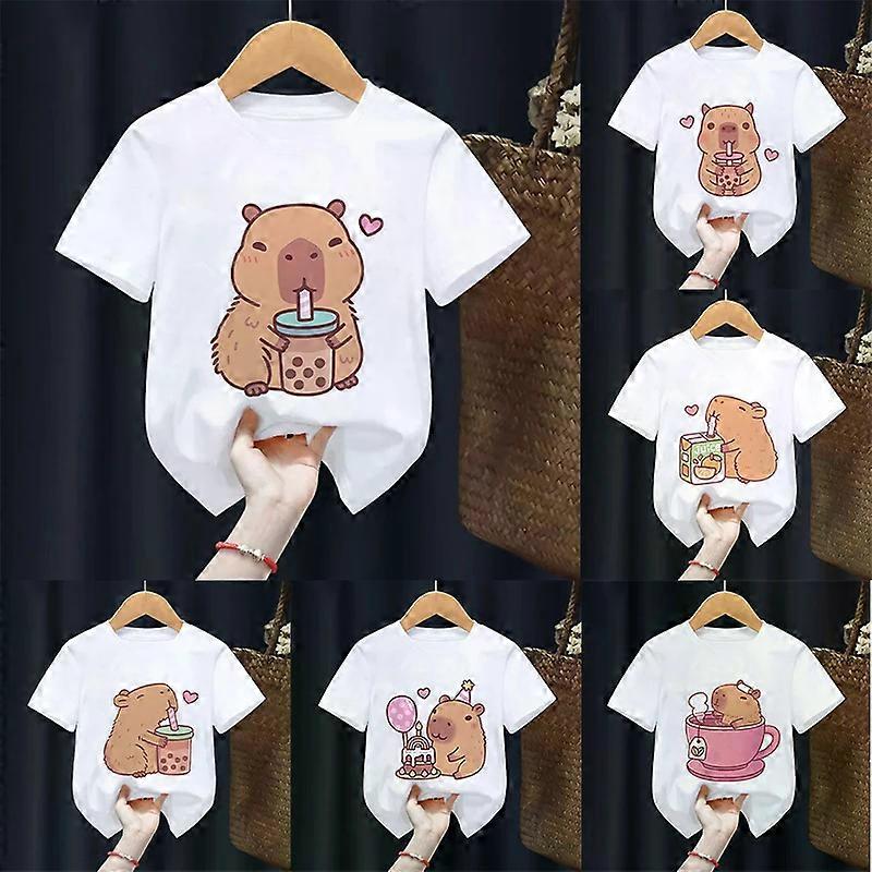 Cute Capybara Kids Boys Girls Casuals Short Sleeves Tops T-shirt Cartoon Graphic T-shirt Kawaii Spring Summer Children Clothing