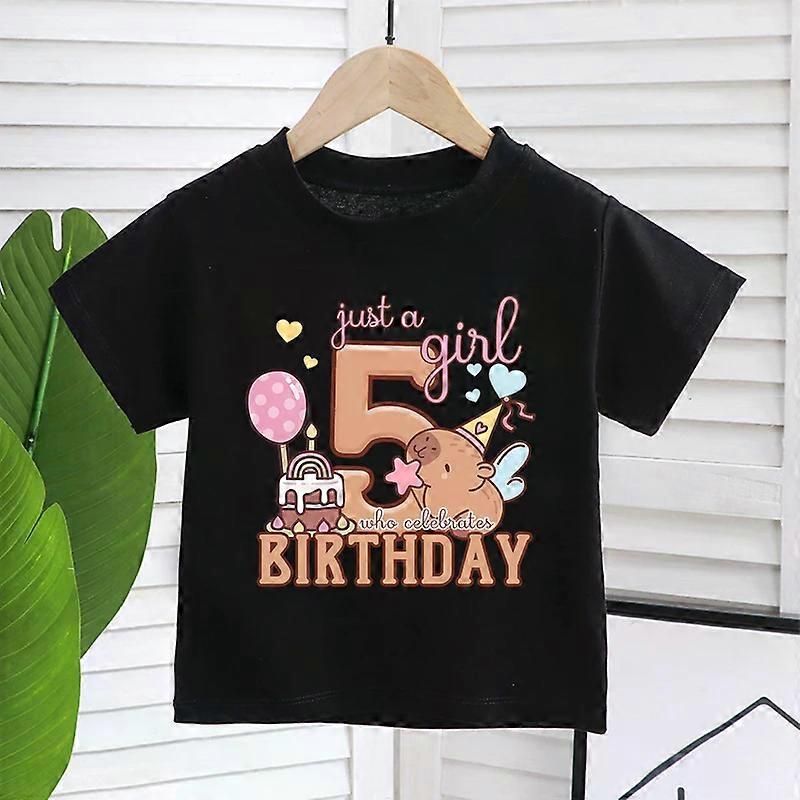 Summer New Cartoon Capybara Girl Birthday Children Tee T-Shirt Short Sleeve Kids Number Tee Shirt Tops Cute Capy Toddler Clothes