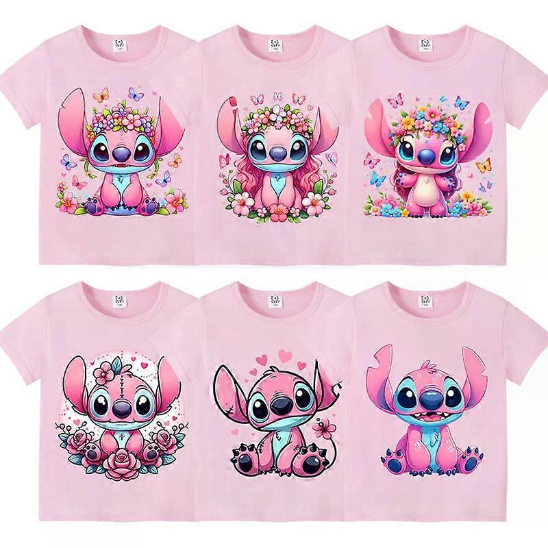 Disney Lilo&Stitch Child Polyester T-shirt Girls Anime Cartoon Print Short Sleeve Tees Summer Casual Tops Kawaii Kids Clothing