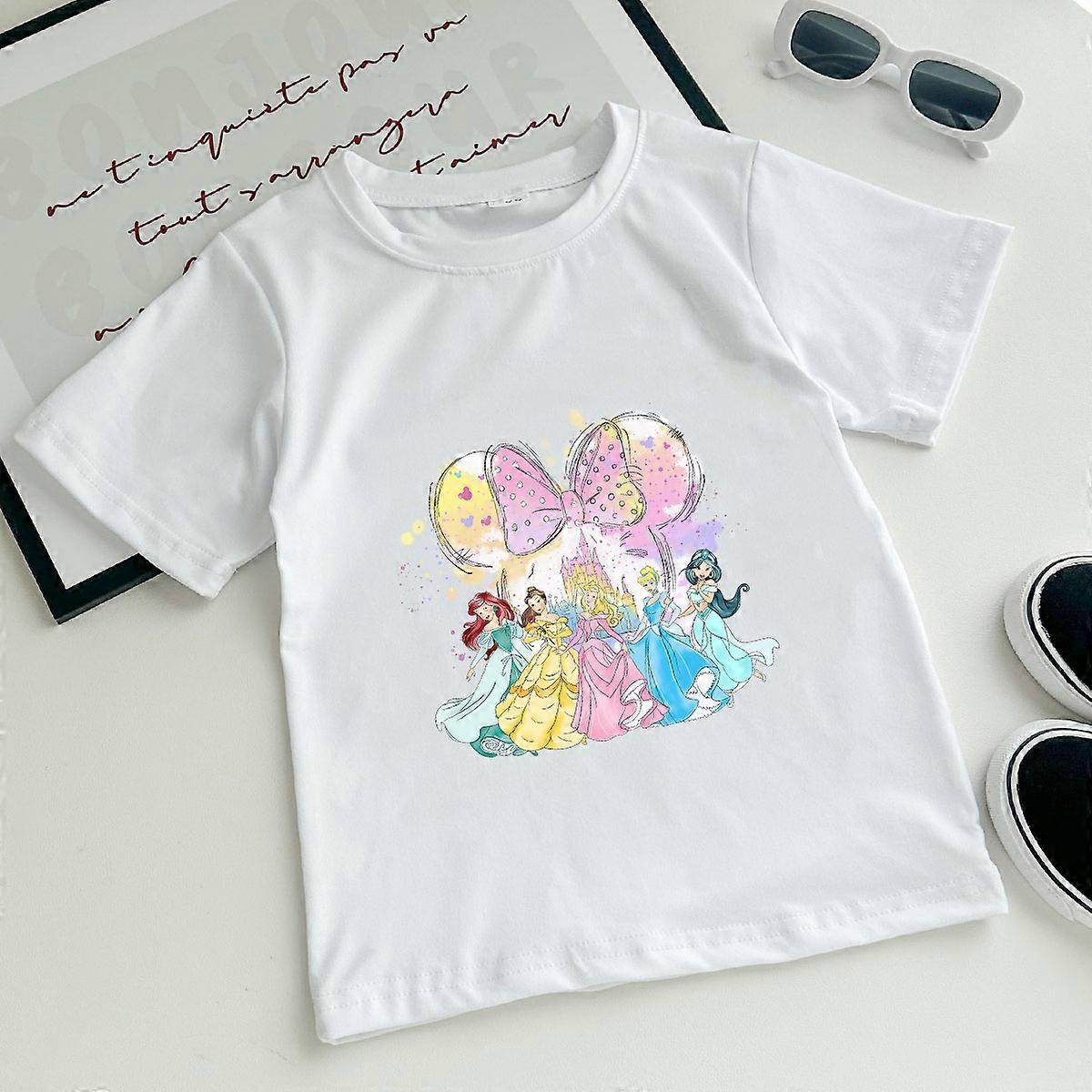 Disney Mickey Mouse Stitch Ears Fantasy Watercolor Castle Printed children T-Shirt Summer Stitch Streetwear Tops girls Clothing