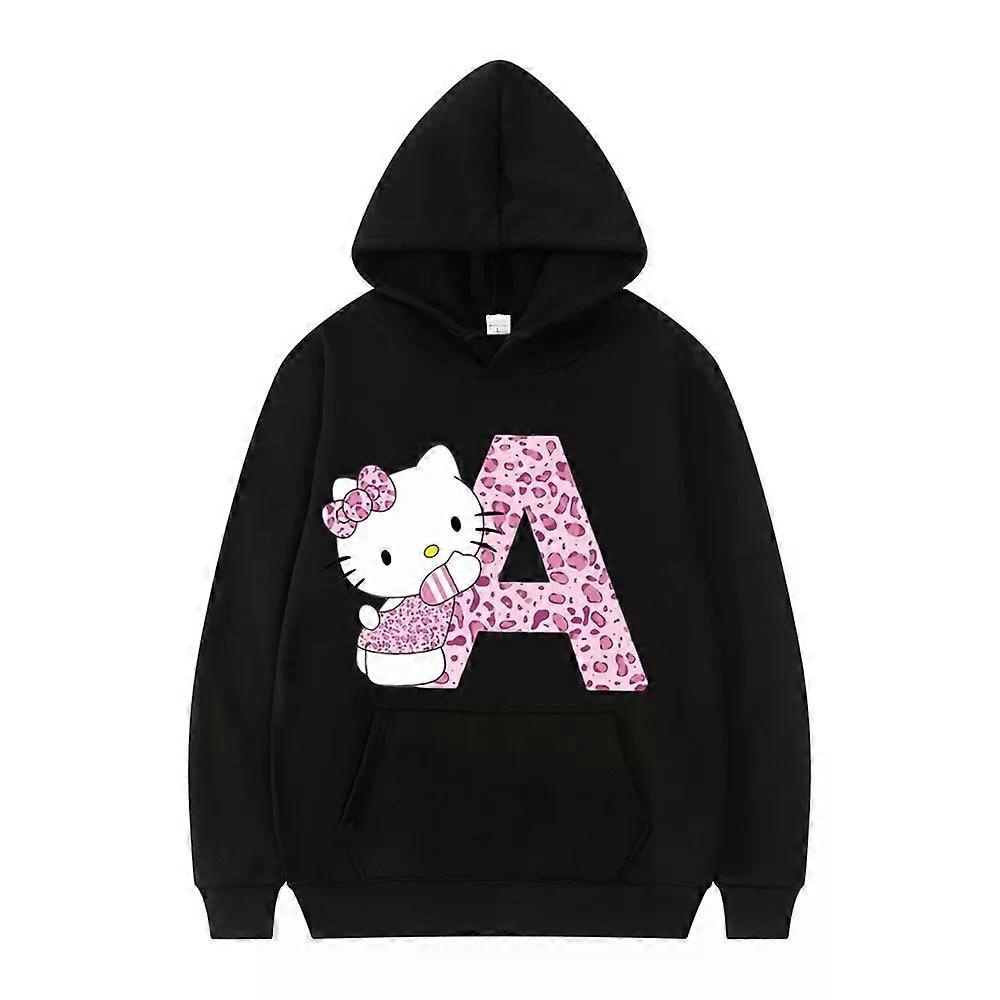 Sanrio Hoodies Clothes Cartoon Clothes 2025 Black Hello Kitty Letter A-Z Girls / Boys Long-sleeved HoodiesKawaii Birthday Gift