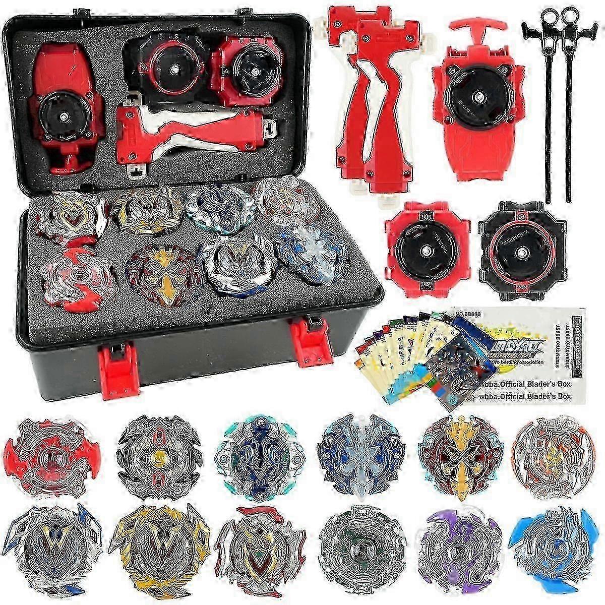 2025 New Battling Top Burst Gyro Toy Set for Kids, 12 Spinning Tops 3 Launchers 2 Grips Toy Blade Combat Battling Game with Portable Storage