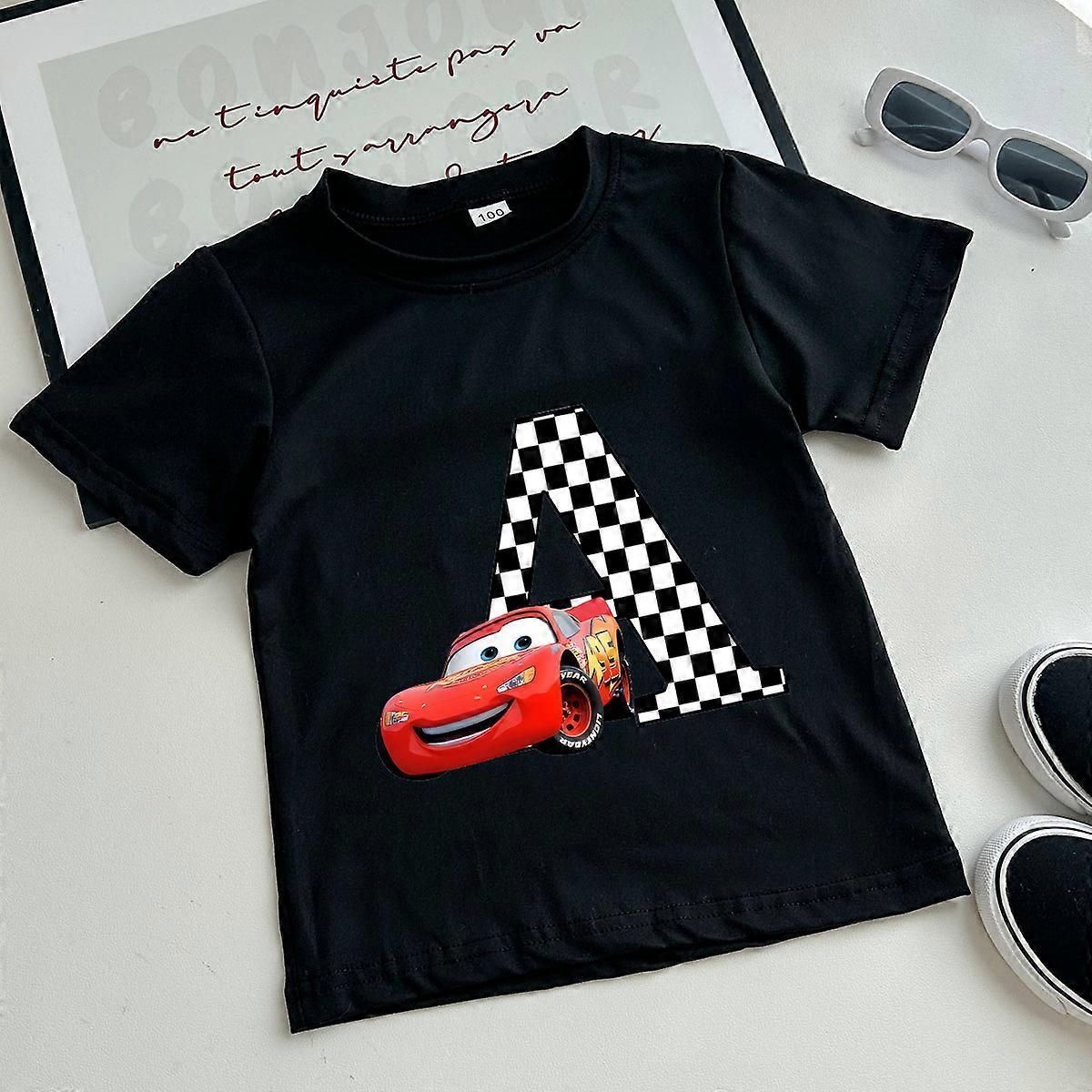 Kawaii Disney Car Pixar Lightning McQueen 26 Alphabet A B C D E Summer Birthday Baby Boys T-Shirts Party Wear Tee Tops Gift