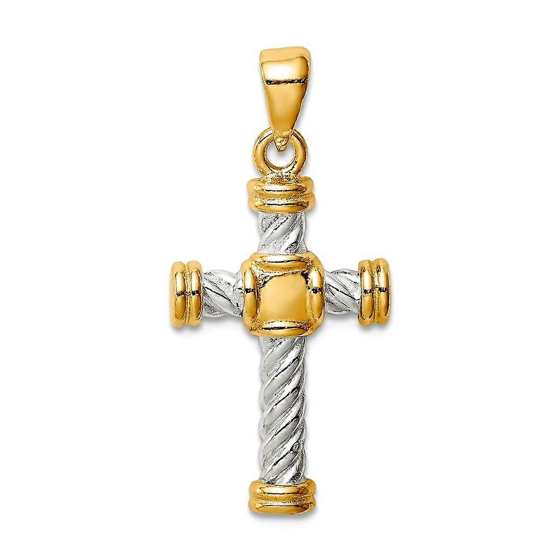 925 Sterling Silver and Gold Tone Twisted Religious Faith Cross Pendant Necklace 23.53x13.13mm Wide 2.23mm Thick Pendant