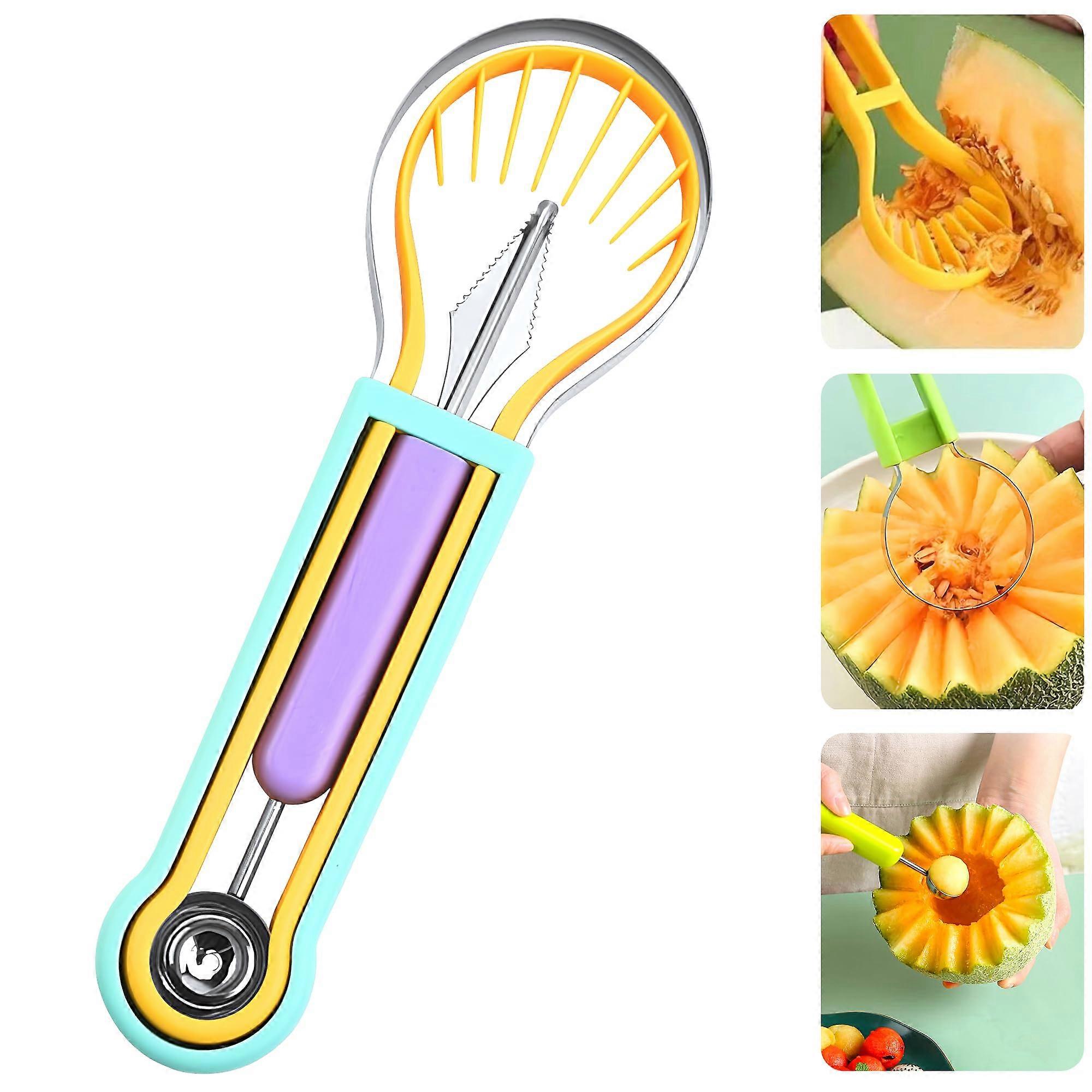 4 in 1 Melon Baller Scoop Set Stainless Steel Fruit Carving Tools with Watermelon Cutter Purple