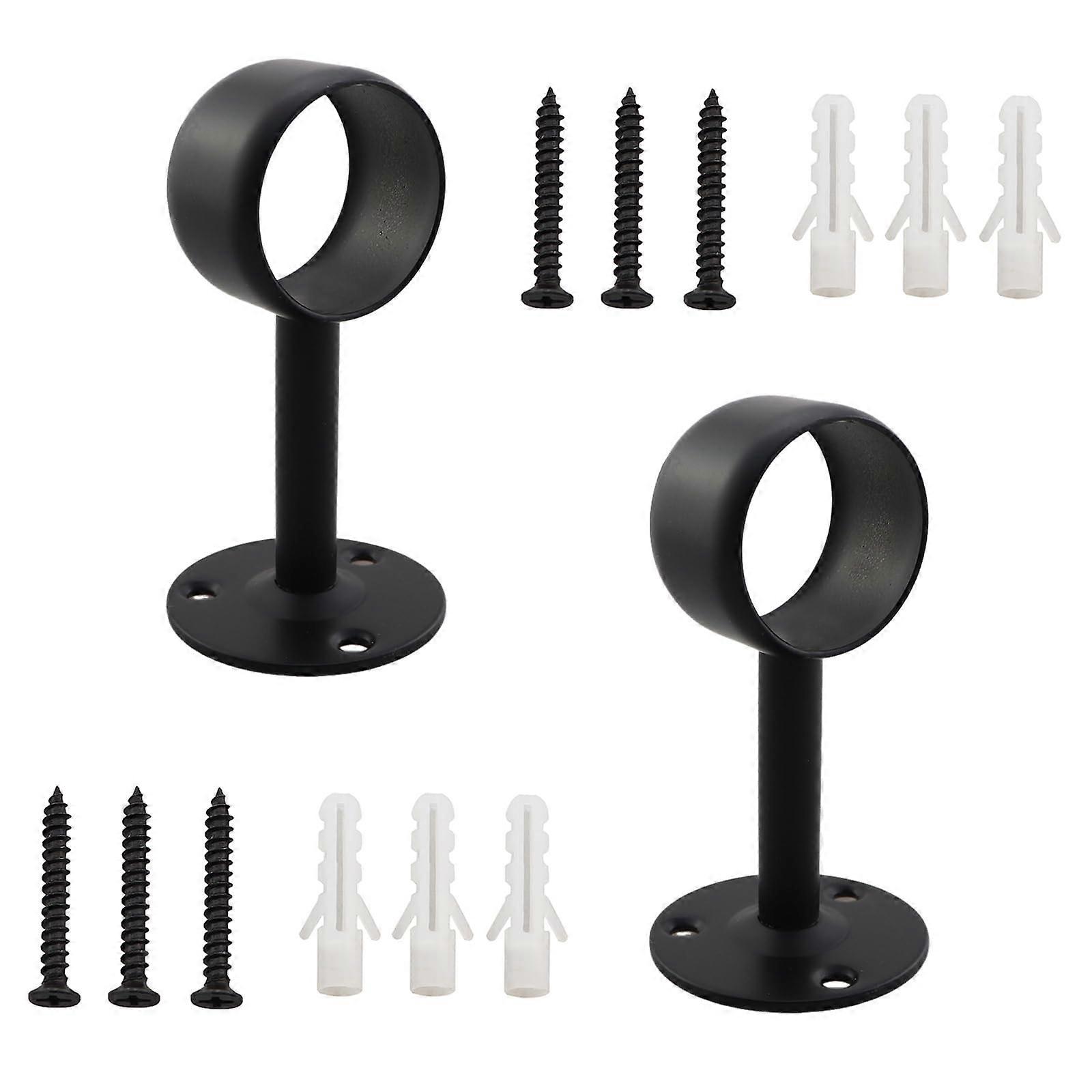 2PCS Black Stainless Steel Closet Rod Flange 11/4 Inch End Support Brackets with Screws