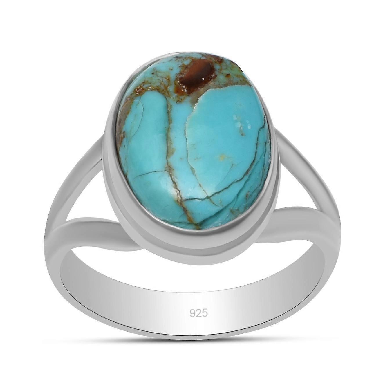Natural 10X14 mm Oval Turquoise Gemstone 925 Sterling Silver Split Shank Rings For Women & Girls