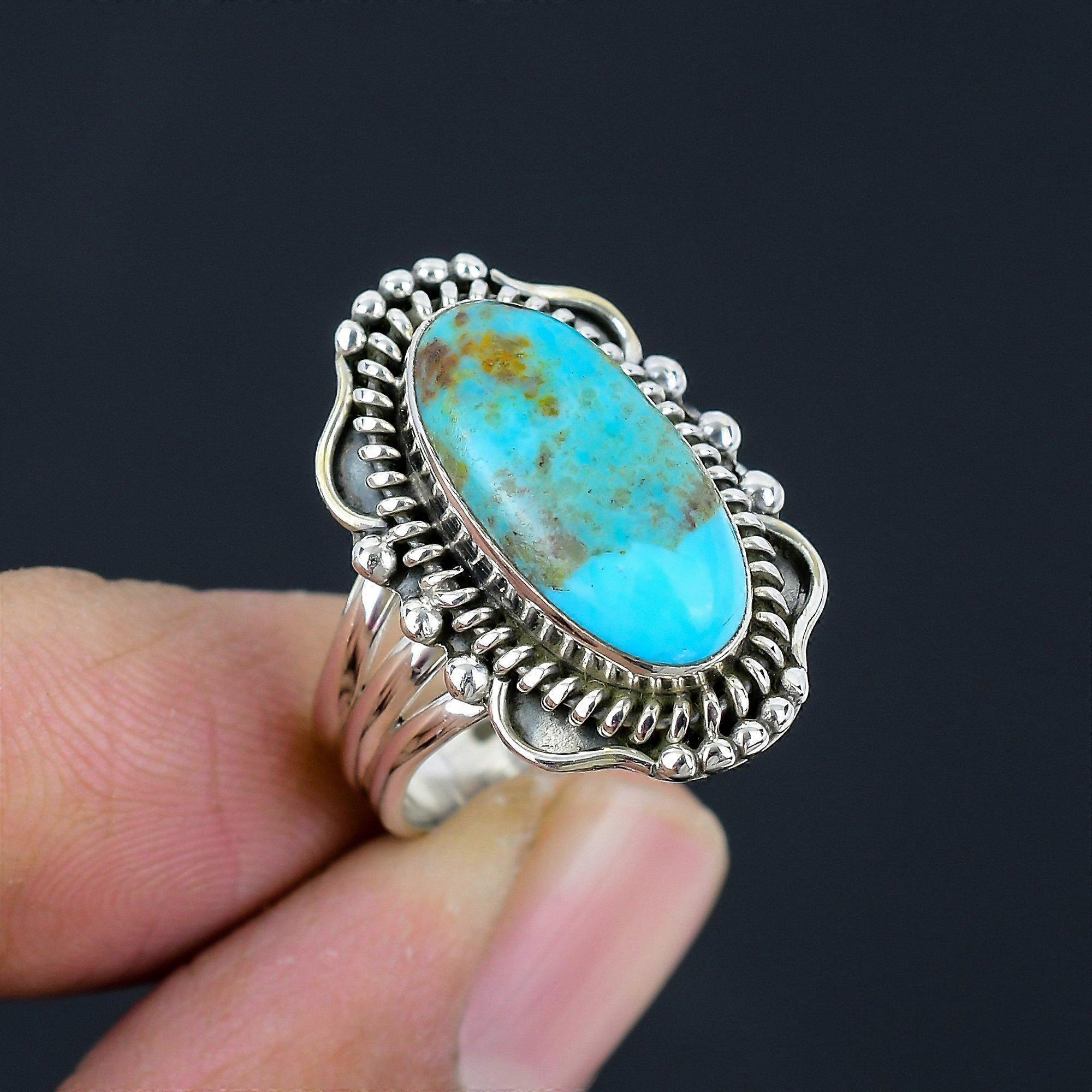 Natural Turquoise Gemstone 925 Sterling Silver Trio Shank Beaded Ring For Women & Girls