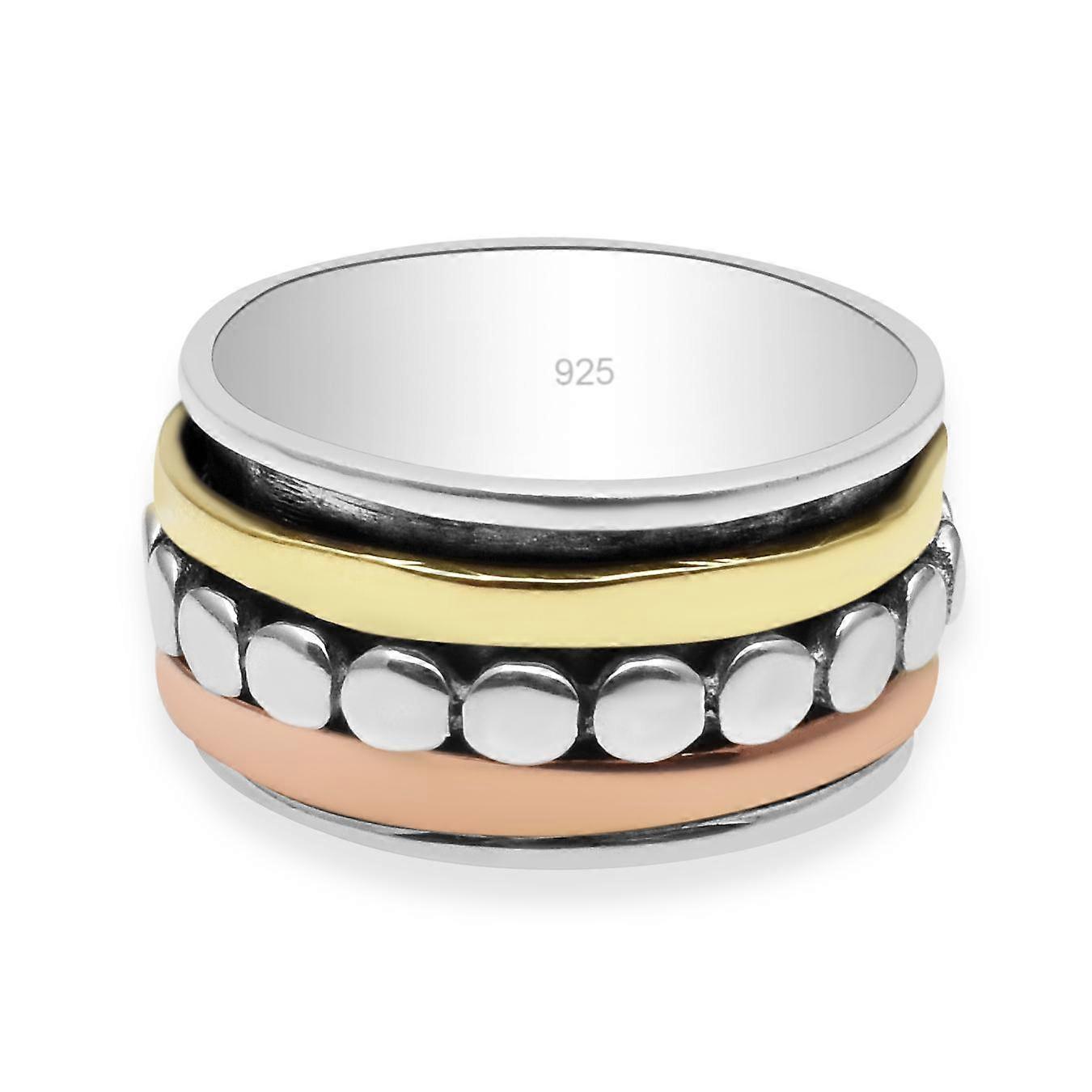 Clarity Meditation Spinning Ring With 2 Brass And 1 Solid 925 Sterling Silver Hammered Pattern Spinners Designed Energy Band Ring For Unisex