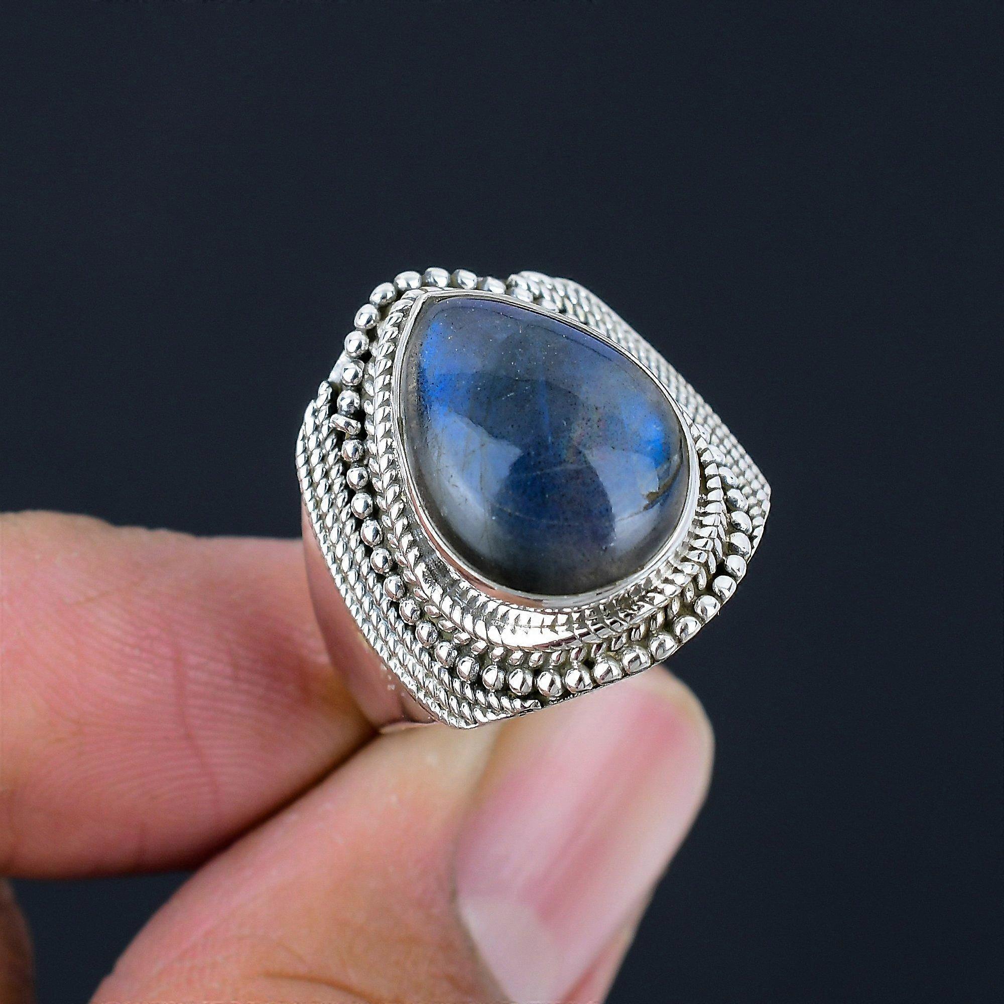 Natural Blue Fiery Labradorite Gemstone Solid 925 Sterling Silver Handmade Statement Ring For Women & Girls