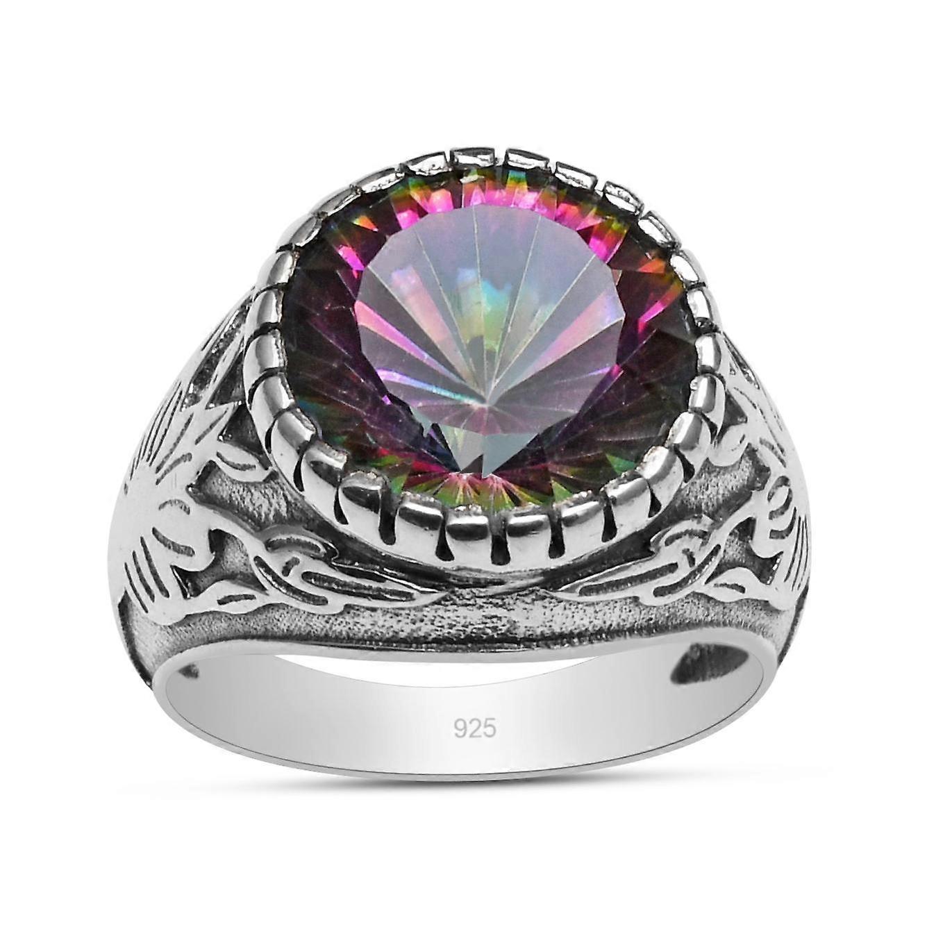 12 mm Round Shape Mystic Topaz 925 Sterling Silver Classy Designer Shank Statement Ring For Unisex