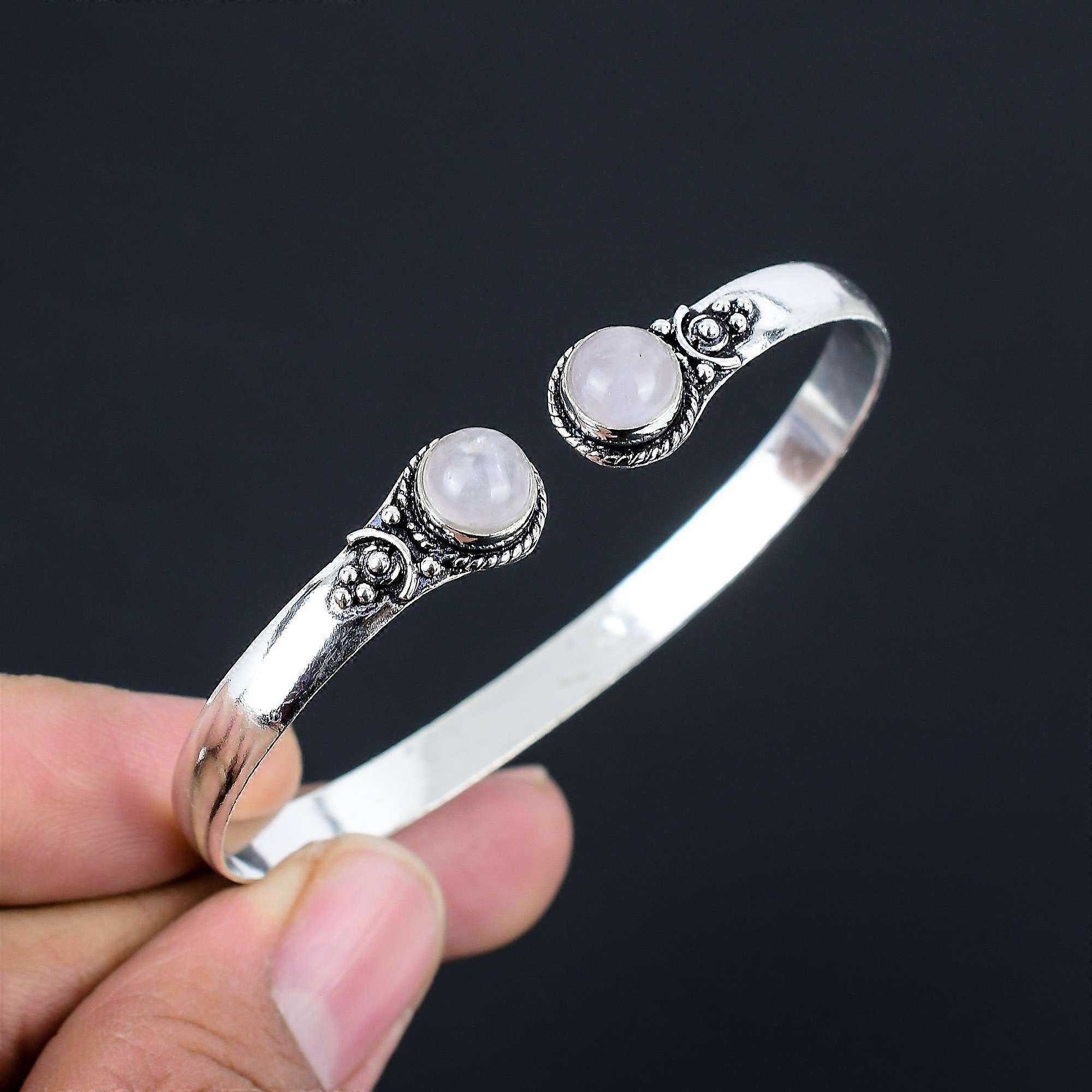 Rose Quartz Gemstone Bangles 925 Sterling Silver Bangle Jewelry Gift For Unisex LG-128