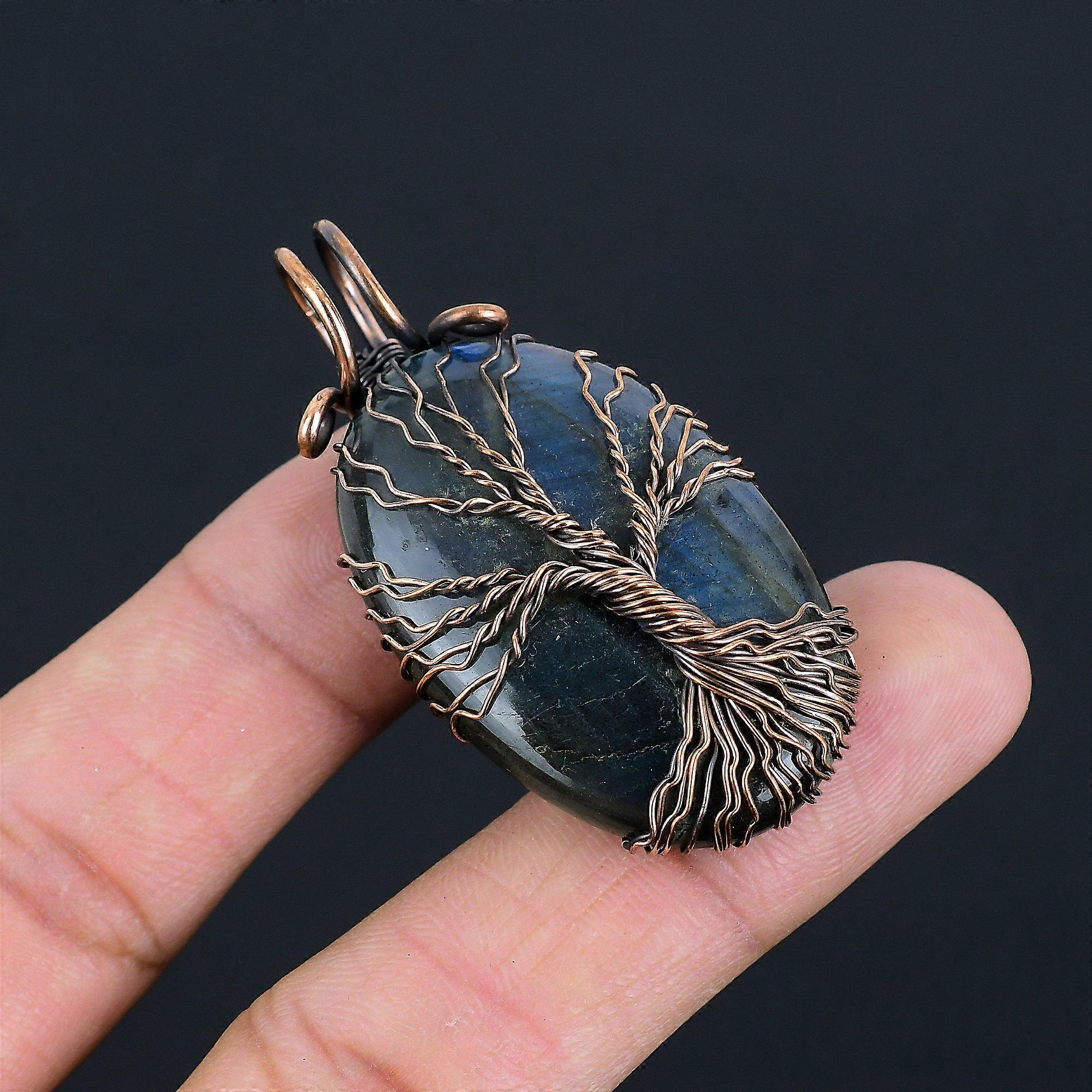 Natural Tree of Life Blue Fire Labradorite Gemstone Pendant | Oxidized Copper Wire Wrapped | Necklace Pendant | Copper Jewelry For Her/him Gemstone - Labradorite Stone Creation- Natural Metal - Copper Handmade Pendant Welcome to our little shop, where you can find handmade copper wire jewelry and more, for you and your loved ones. We do accept custom orders also, kindly message us for more. Note :- Due to the natural formation of this gemstone. Slight variation in texture and color but stone shape is same. Benefits of Wearing Labradorite Gemstone:- It helps an individual regain energy while aiding the body and spirit in healing itself. In the metaphysical world, labradorite is considered one of the most powerful protectors. The gemstone creates a shield for auras and protects against negativity of the world. Benefits of Wearing Copper Jewelry:- It's Known to help reduce inflammation, arthritis, headaches, and improve digestions. It helps bring the body back into alignment. Amplifies energy, it is an excellent conductor and helps stimulate the flow energy.