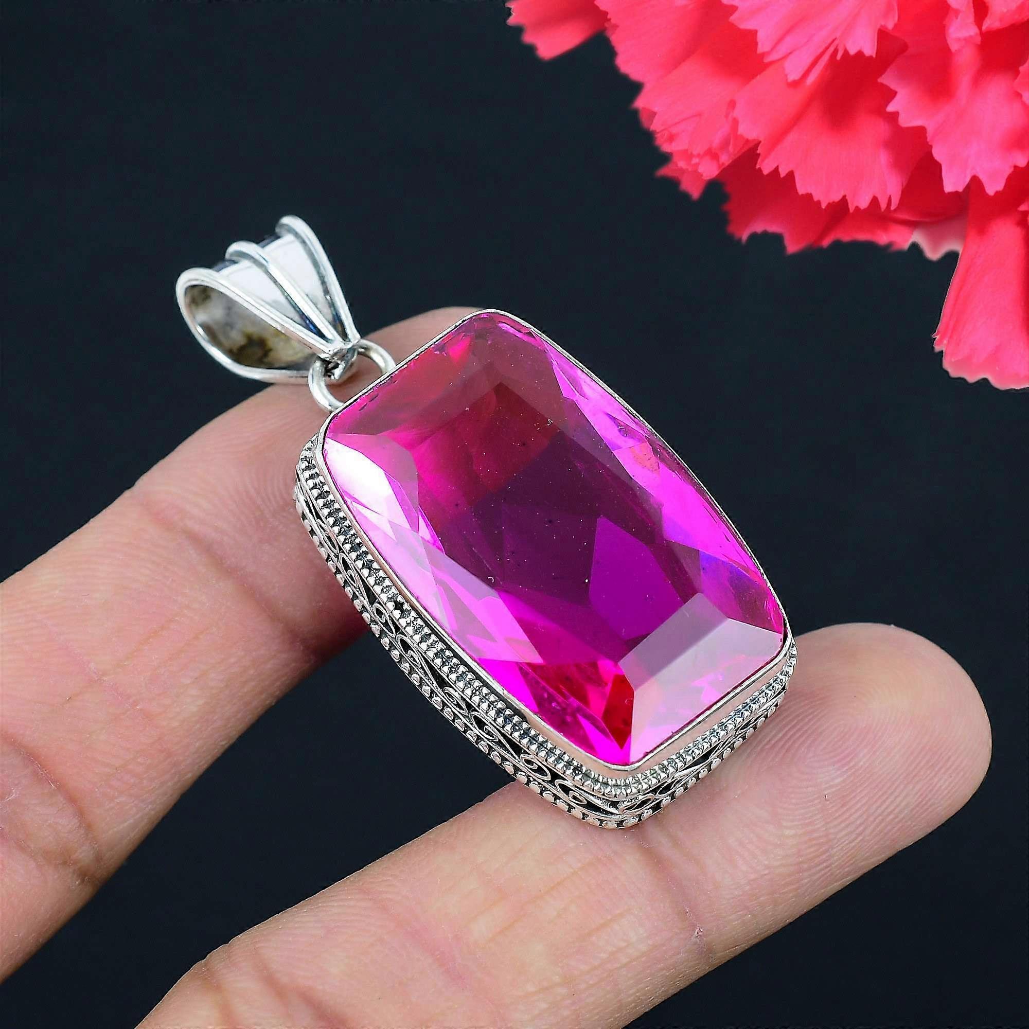 Pink Topaz Gemstone Pendant Solid 925 Sterling Silver Pendant Jewelry Gift For Unisex