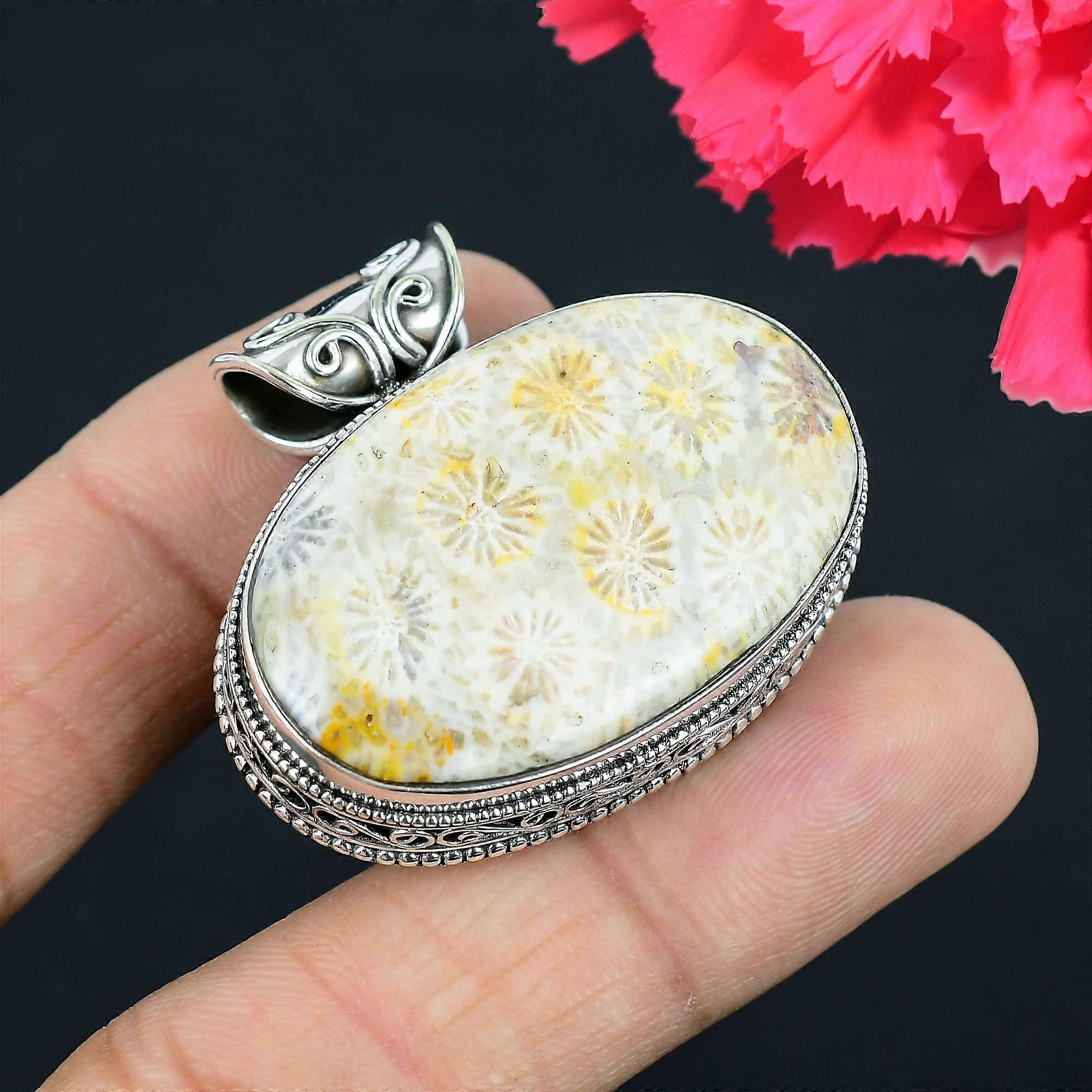 Fossil Coral Gemstone Pendant Solid 925 Sterling Silver Pendant Jewelry Gift For Unisex