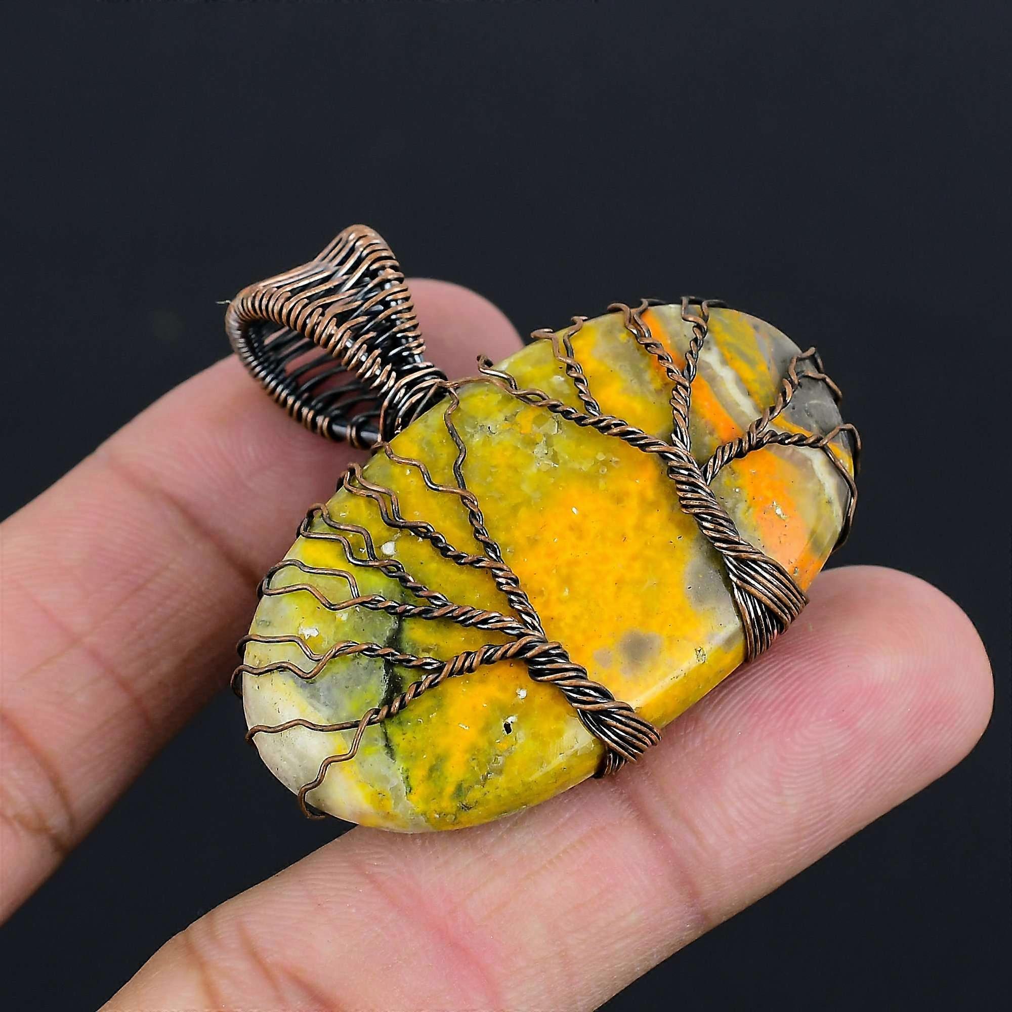 Bumble Bee Jasper Gemstone Pendant | Oxidized Copper Wire Wrapped | Necklace Pendant | Handmade Copper Pendant Jewelry Gift For Her/himLC-304