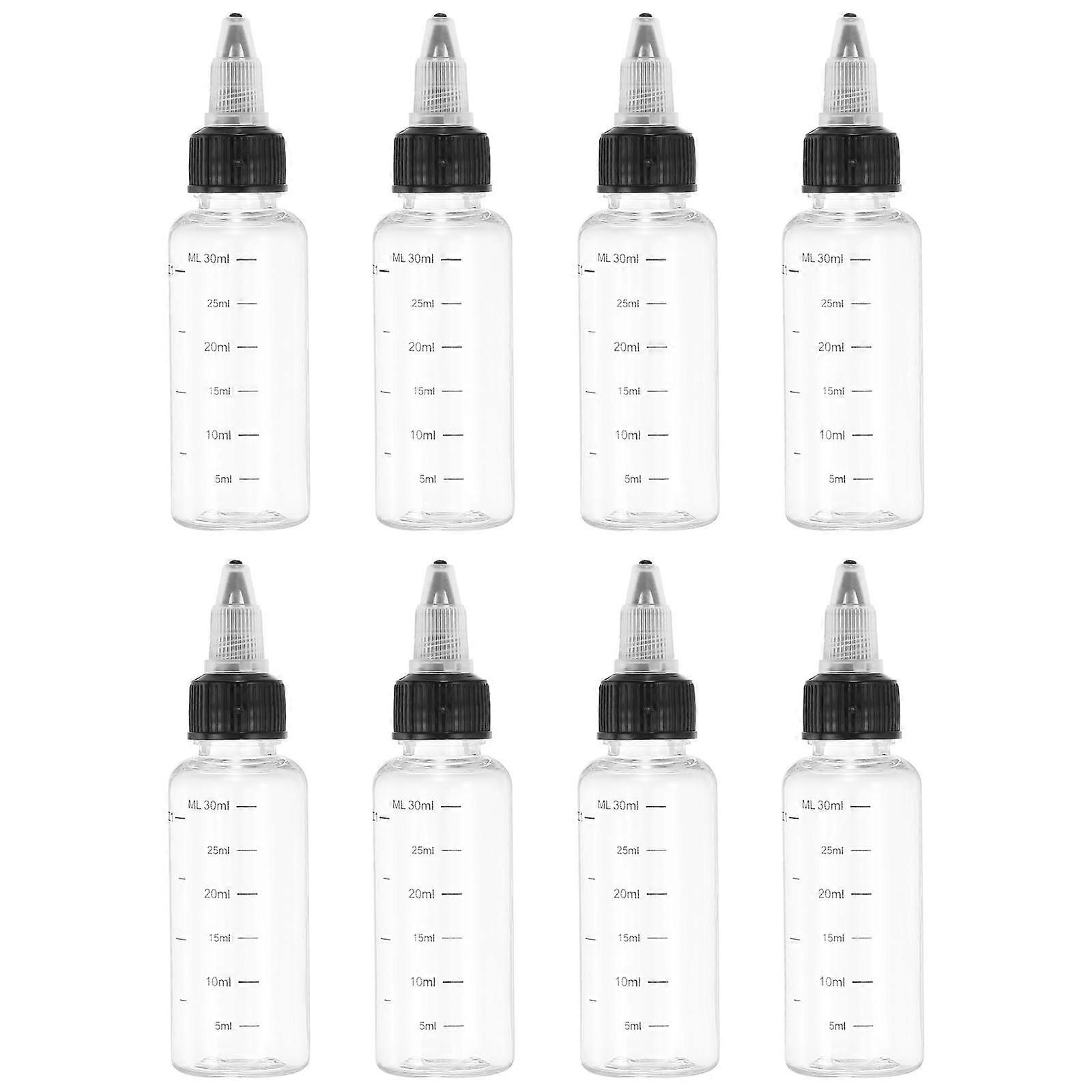 30ml 1oz Plastic Squeeze Bottles with Leakproof Twist Cap, Clear PET Markings for Liquids Crafts Oils, 8 Pack Transparent
