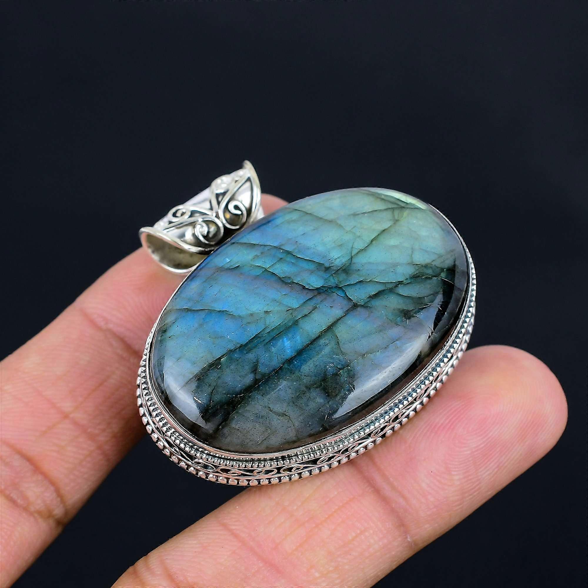 Labradorite Gemstone Pendant Solid 925 Sterling Silver Pendant Jewelry Gift For Unisex