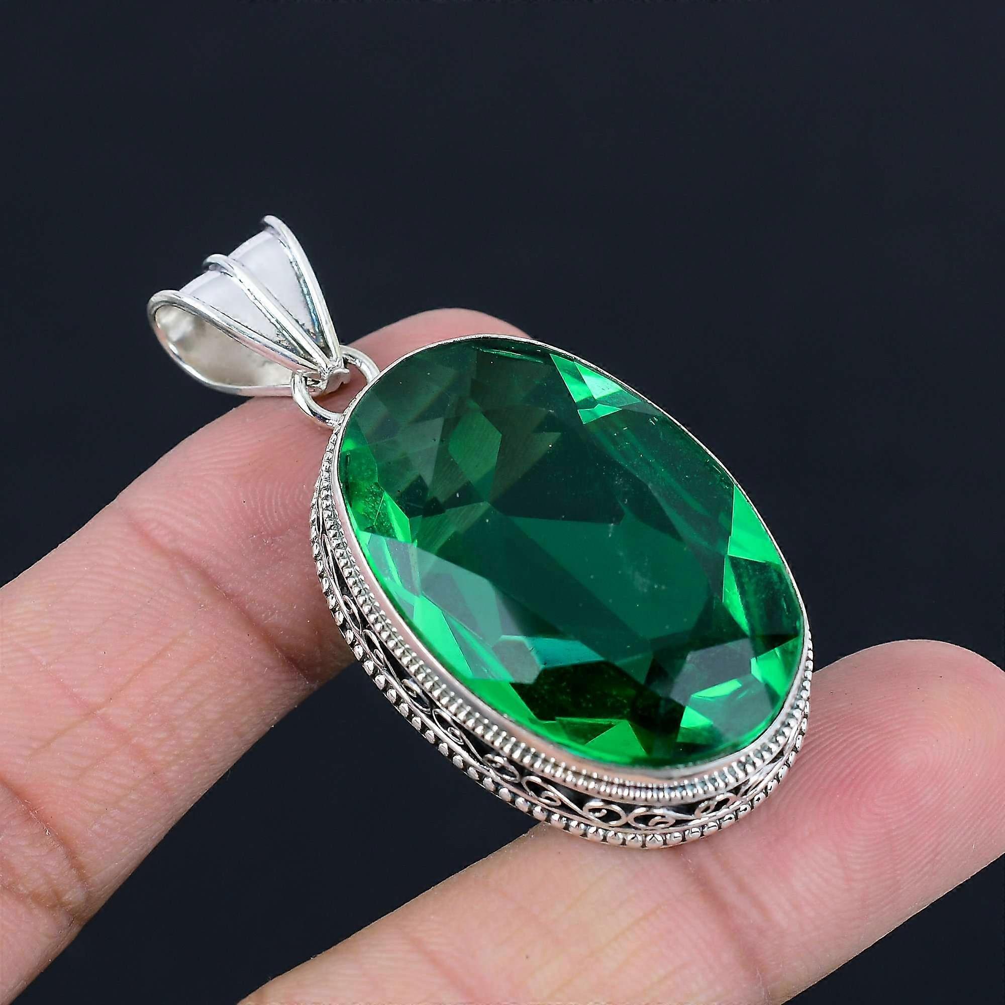 Green Quartz Gemstone Pendant Solid 925 Sterling Silver Pendant Jewelry Gift For Unisex