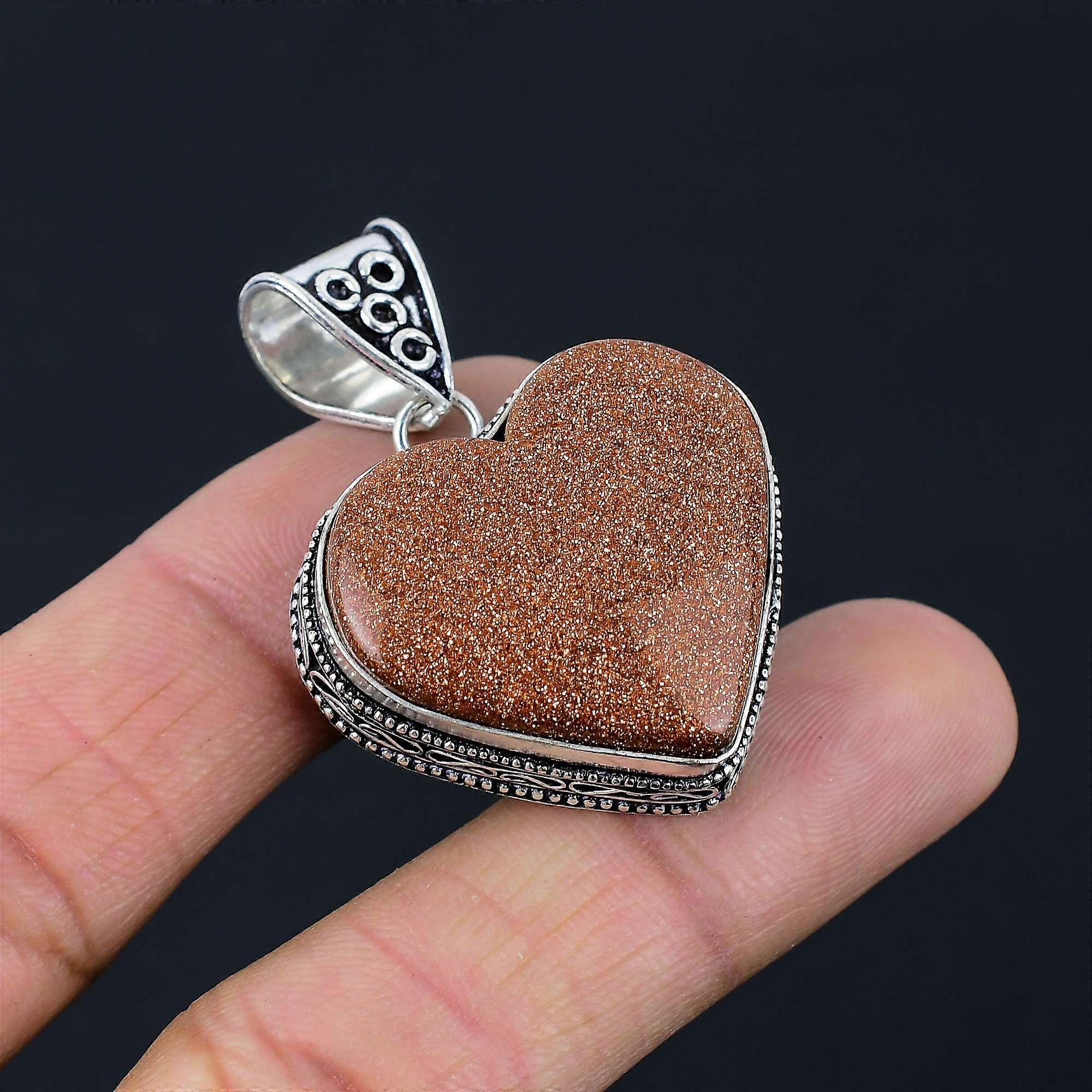 Goldstone Gemstone Pendant Solid 925 Sterling Silver Pendant Jewelry Gift For Unisex LG-033