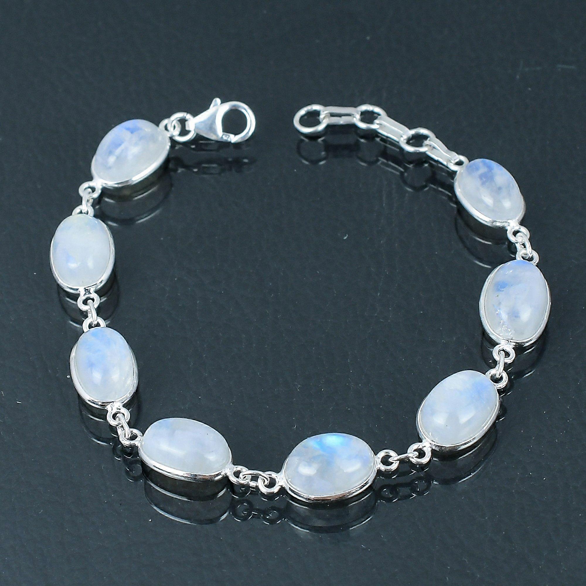 8x12 mm Natural Rainbow Moonstone Bracelet 925 Sterling Silver Oval Shape Gemstone Handmade Link Bracelets Gift For Valentine's Day
