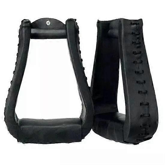 Western Stirrups Saddle Tack Handmade Black Leather Covered Pair .