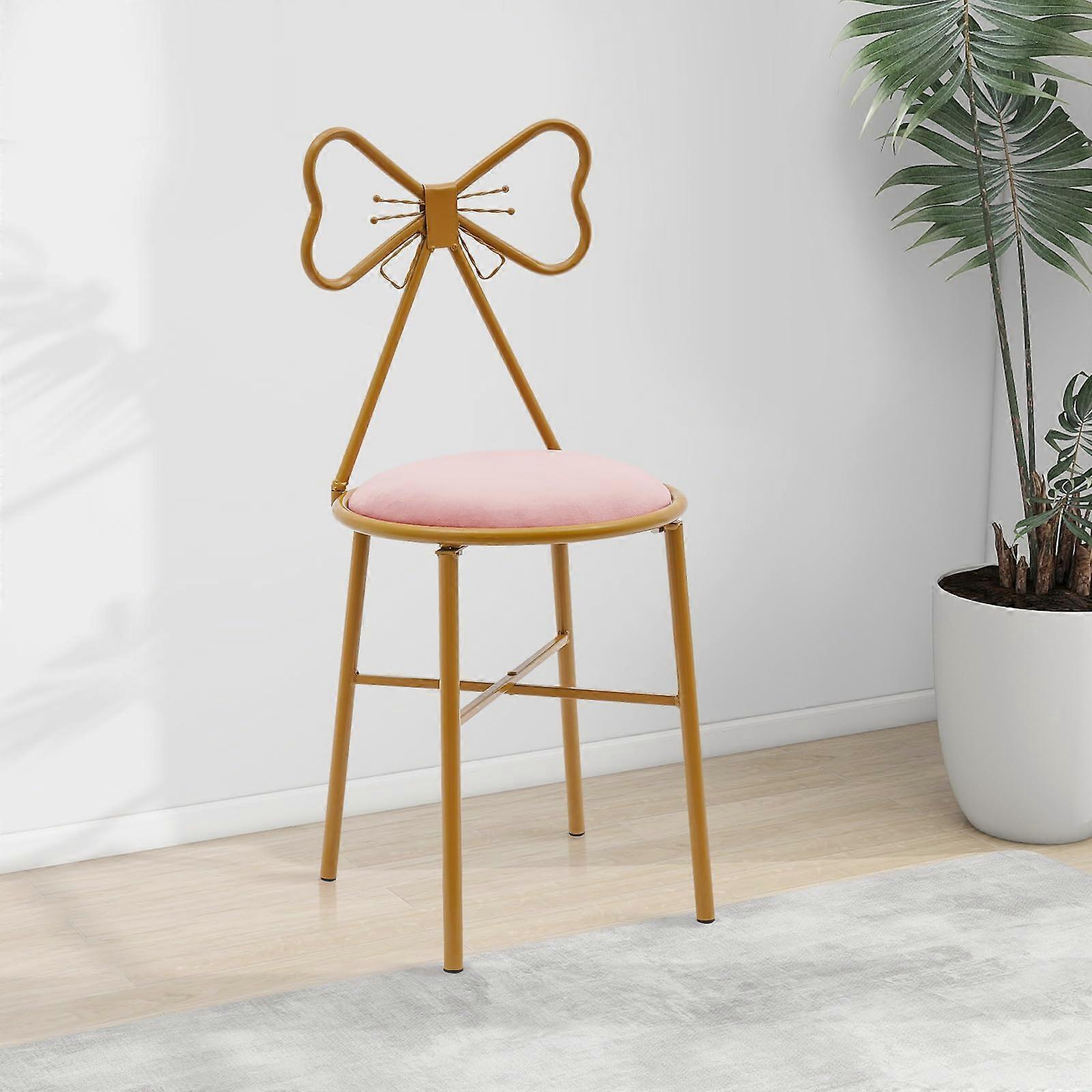 Pink Butterfly Vanity Chair with Velvet Padded Seat and Gold Frame for Dressing Table or Bedroom