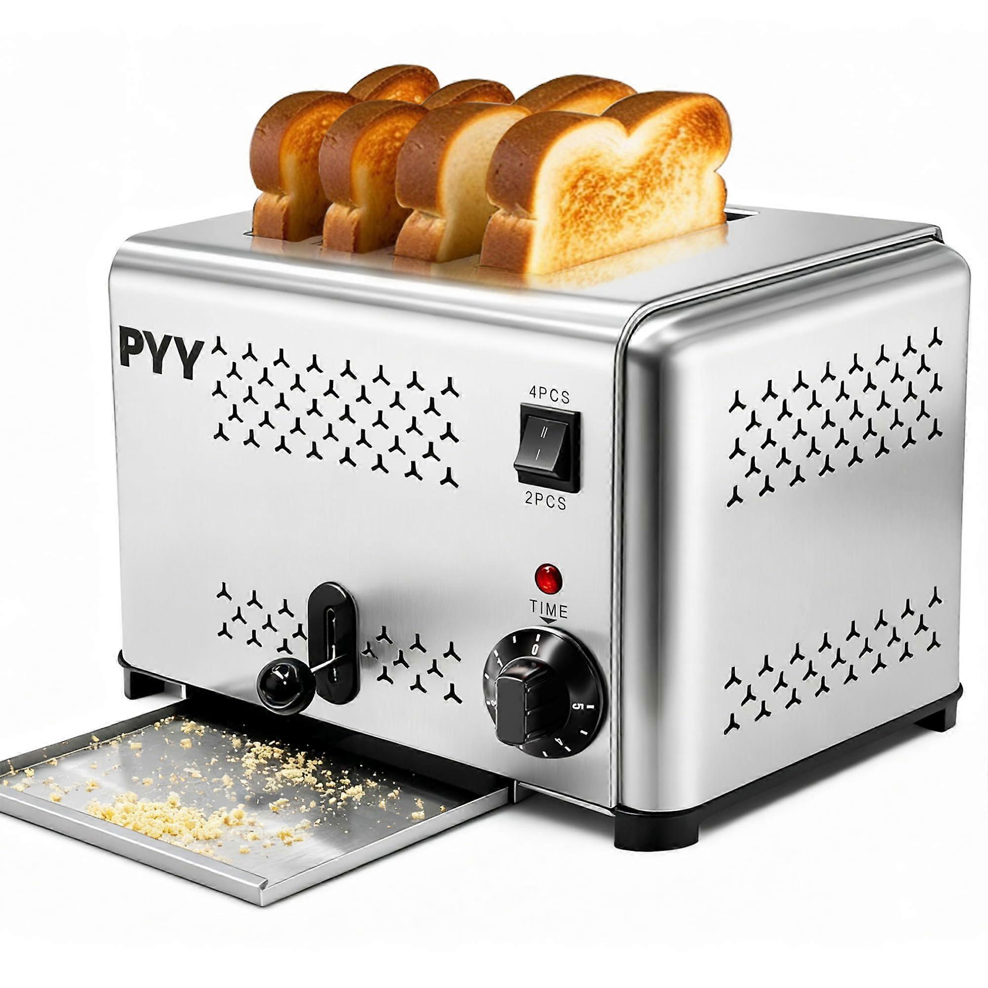 4 Slice Commercial Toaster 1200W Fast Heating with Wide Slots and Removable Crumb Tray
