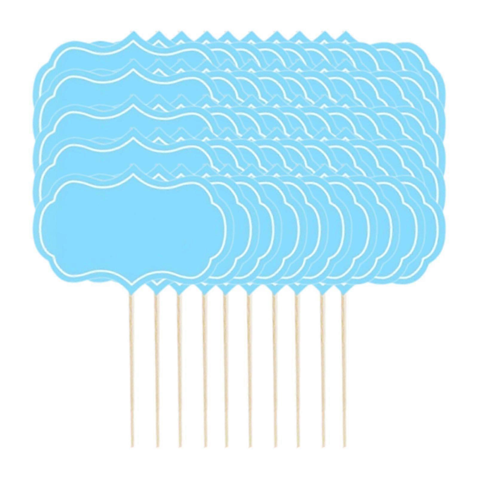 50Pcs Blank Toothpick Flags Cupcake Toppers for Party Food, Reusable Food Label Picks, Blue