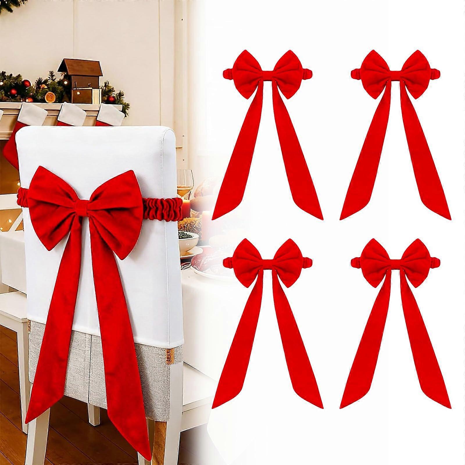 Velvet Chair Sashes with Elegant 3D Bows, Burgundy Red, Set of 4 for Wedding, Christmas, Events