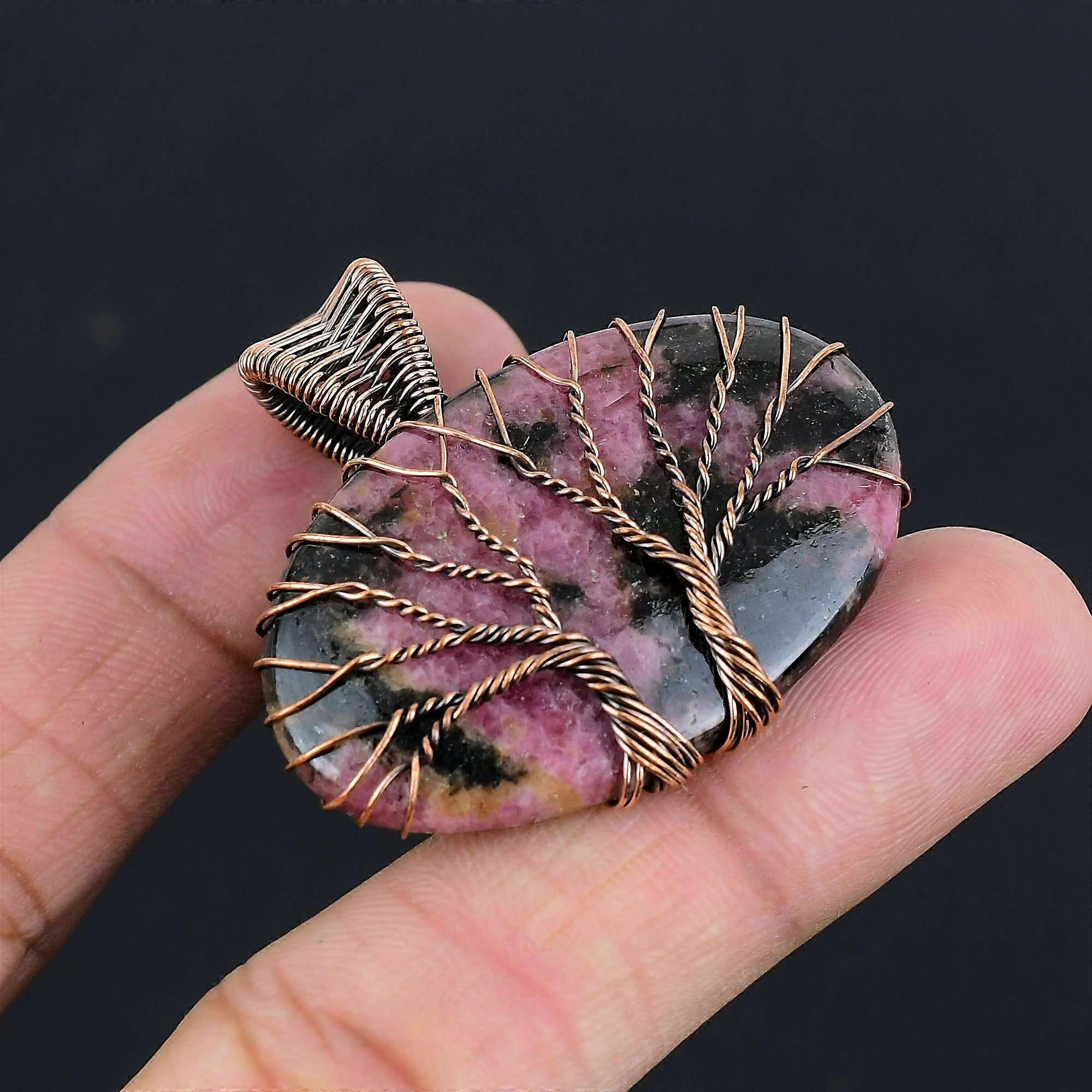 Rhodonite Gemstone Pendant | Oxidized Copper Wire Wrapped | Necklace Pendant | Handmade Copper Pendant Jewelry Gift For Her/himLC-306