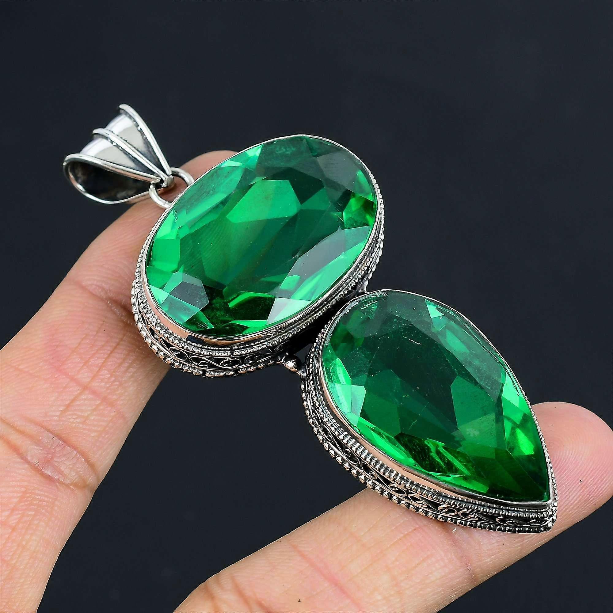 Green Quartz Gemstone Pendant Solid 925 Sterling Silver Pendant Jewelry Gift For Unisex