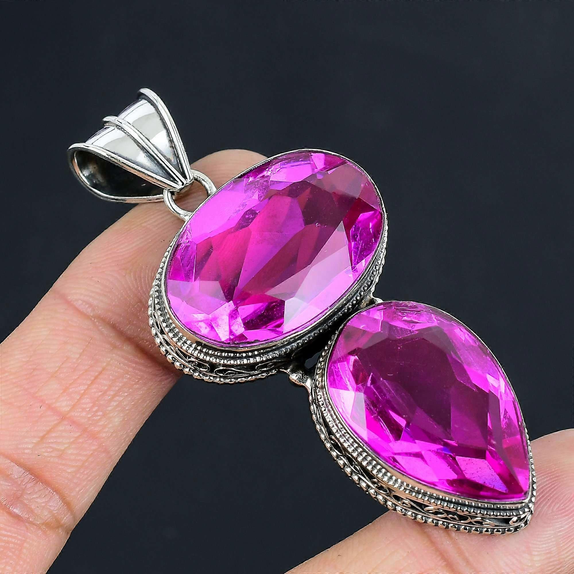 Pink Topaz Gemstone Pendant Solid 925 Sterling Silver Pendant Jewelry Gift For Unisex