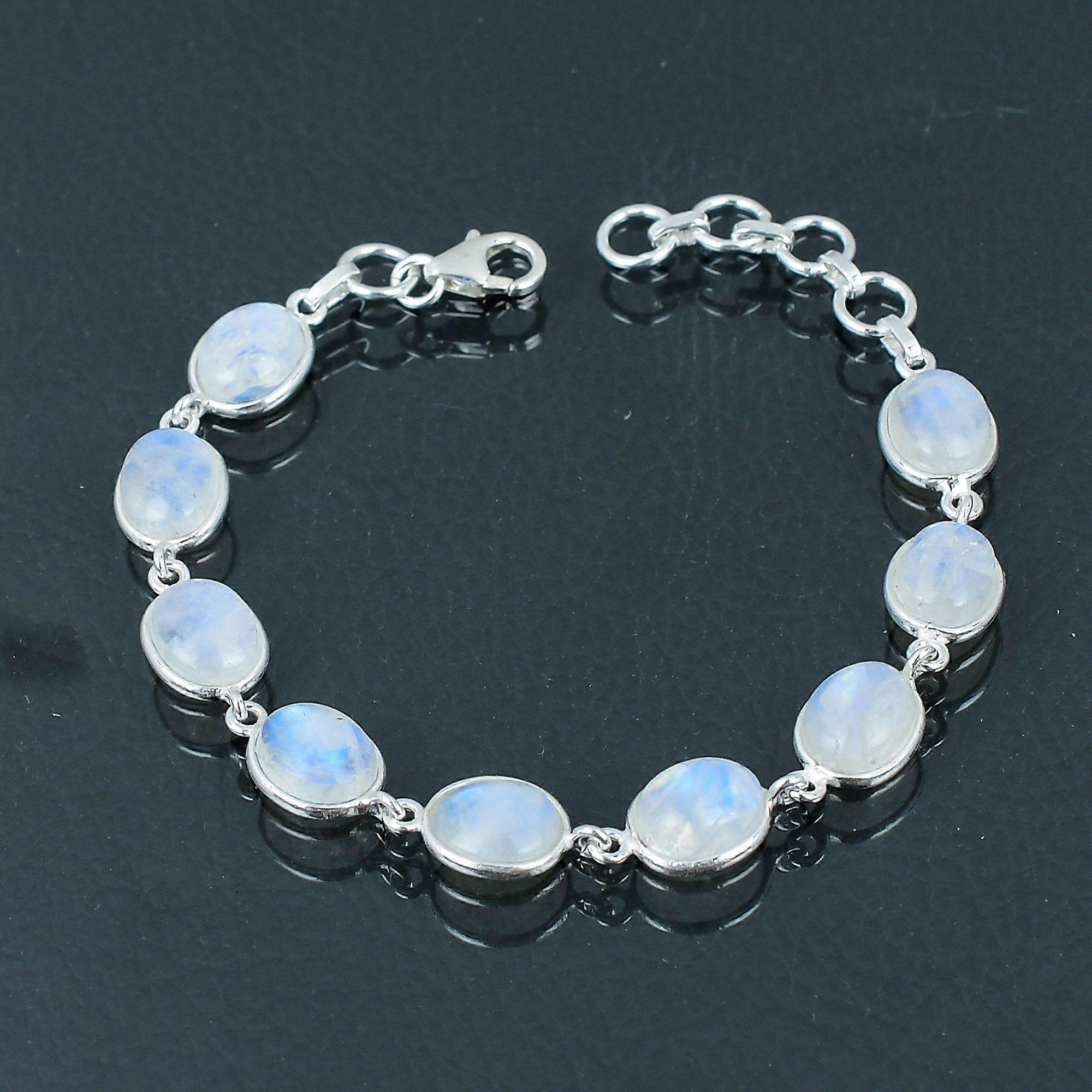 Natural Rainbow Moonstone Gemstone Bracelet, 925 Sterling Silver, Handmade Silver Bracelet Jewelry Gift for Valentine's Day