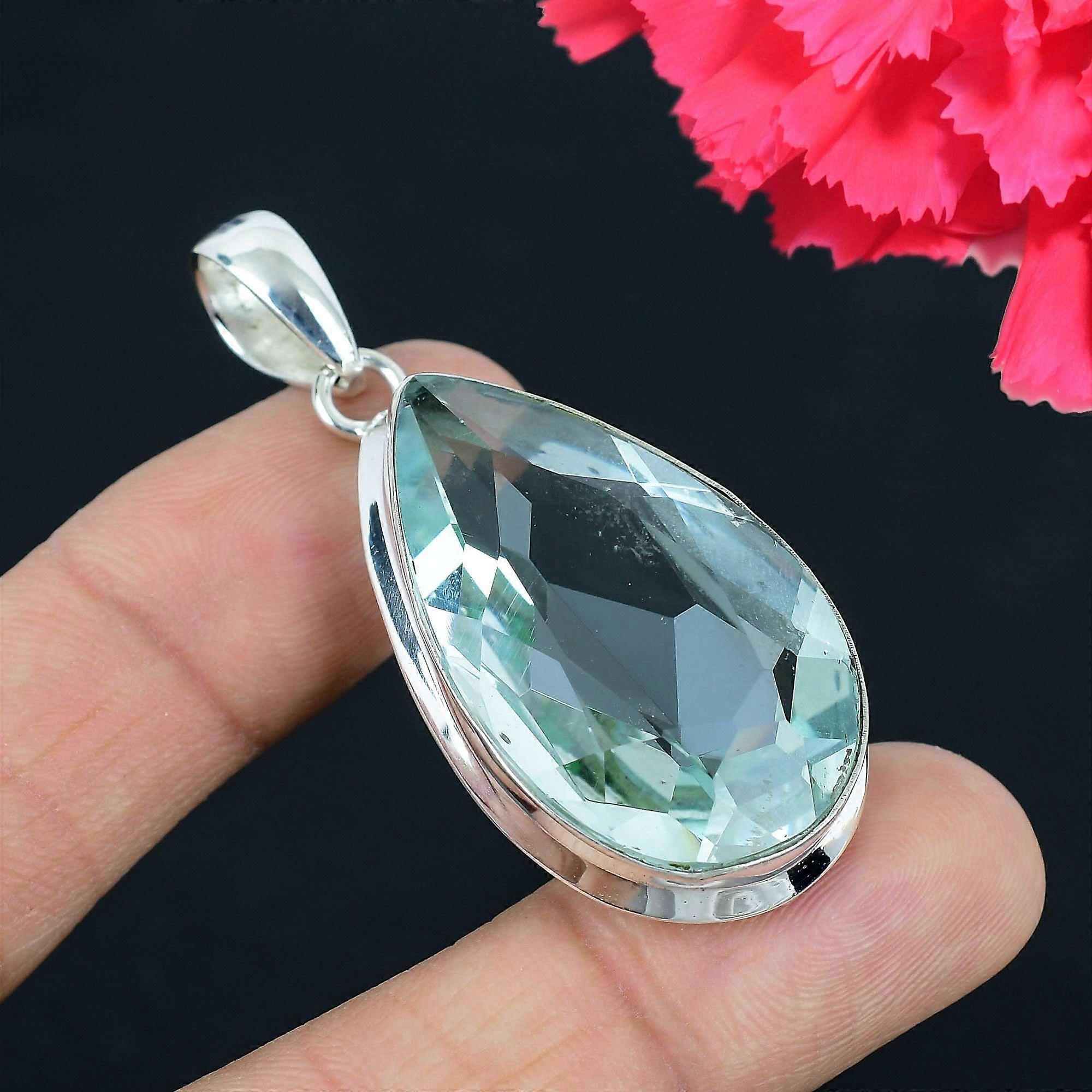Blue Topaz Gemstone Pendant Solid 925 Sterling Silver Pendant Jewelry Gift For Unisex