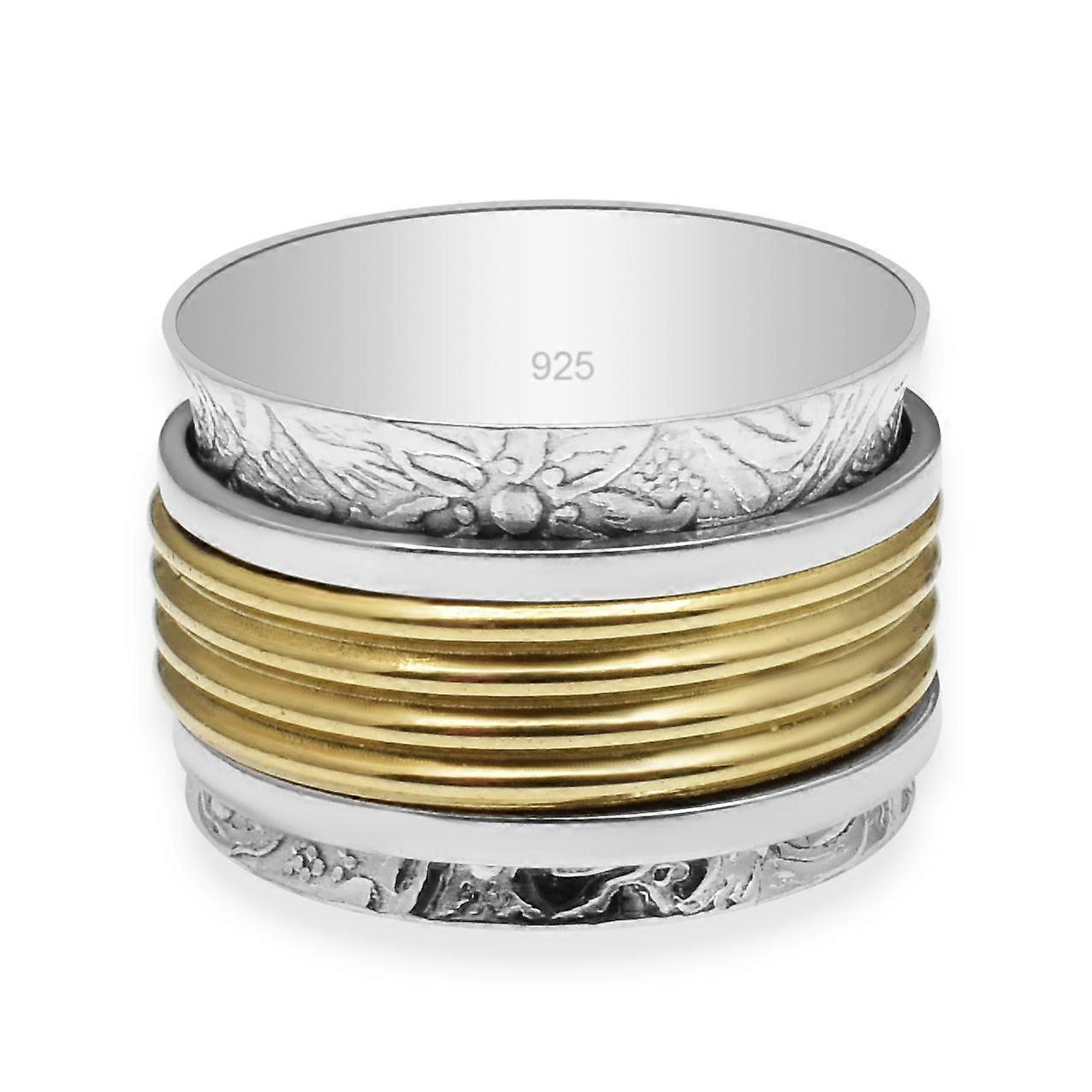 Flower Leaf Design Boho Spinning Band Statement Ring Chrysanthemum 925 Sterling Silver Meditation Spinner Ring