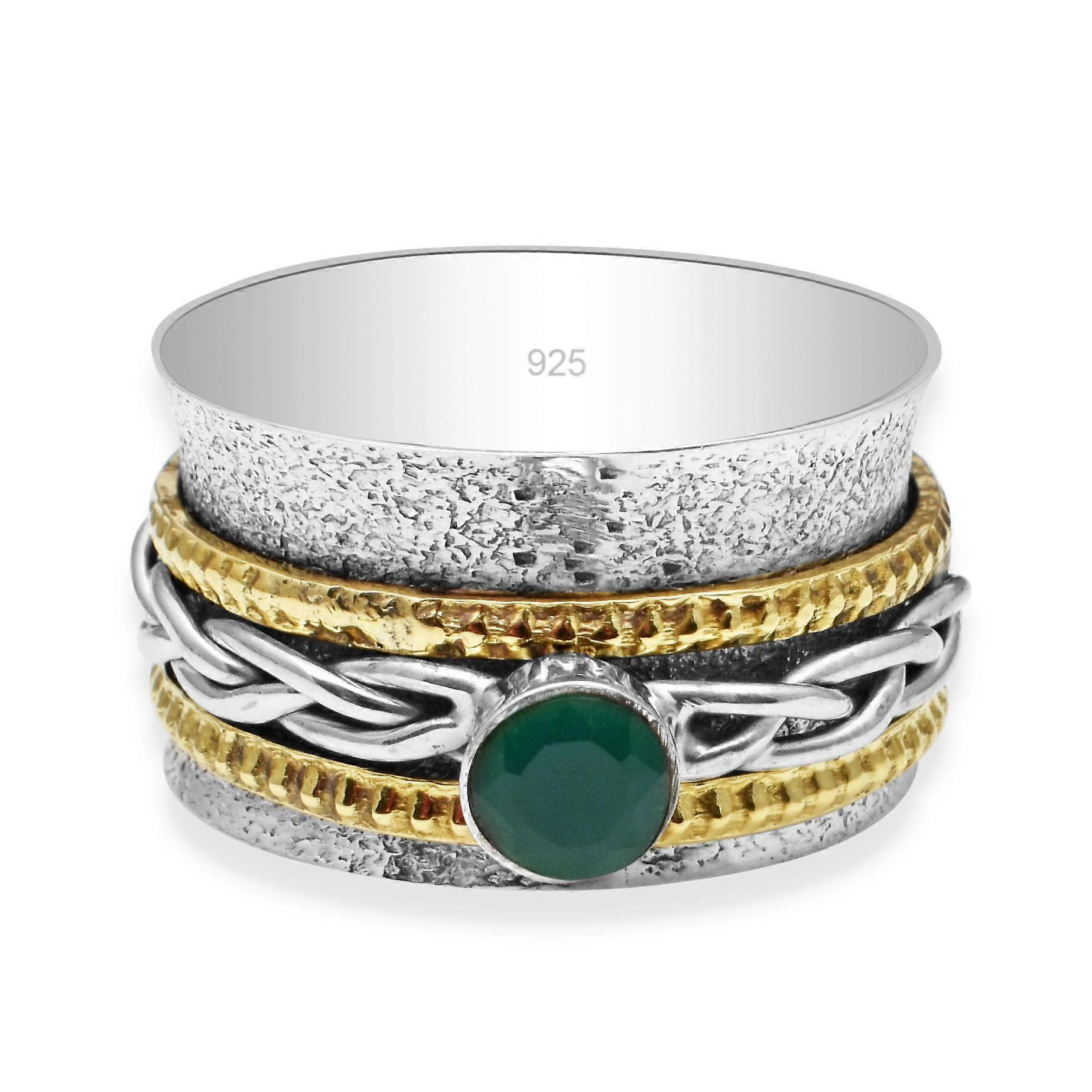 Natural Green Onyx Clarity Meditation Spinning Ring With 2 Brass And 1 Sterling Silver Spinners Ring Hammered Twisted Band Ring